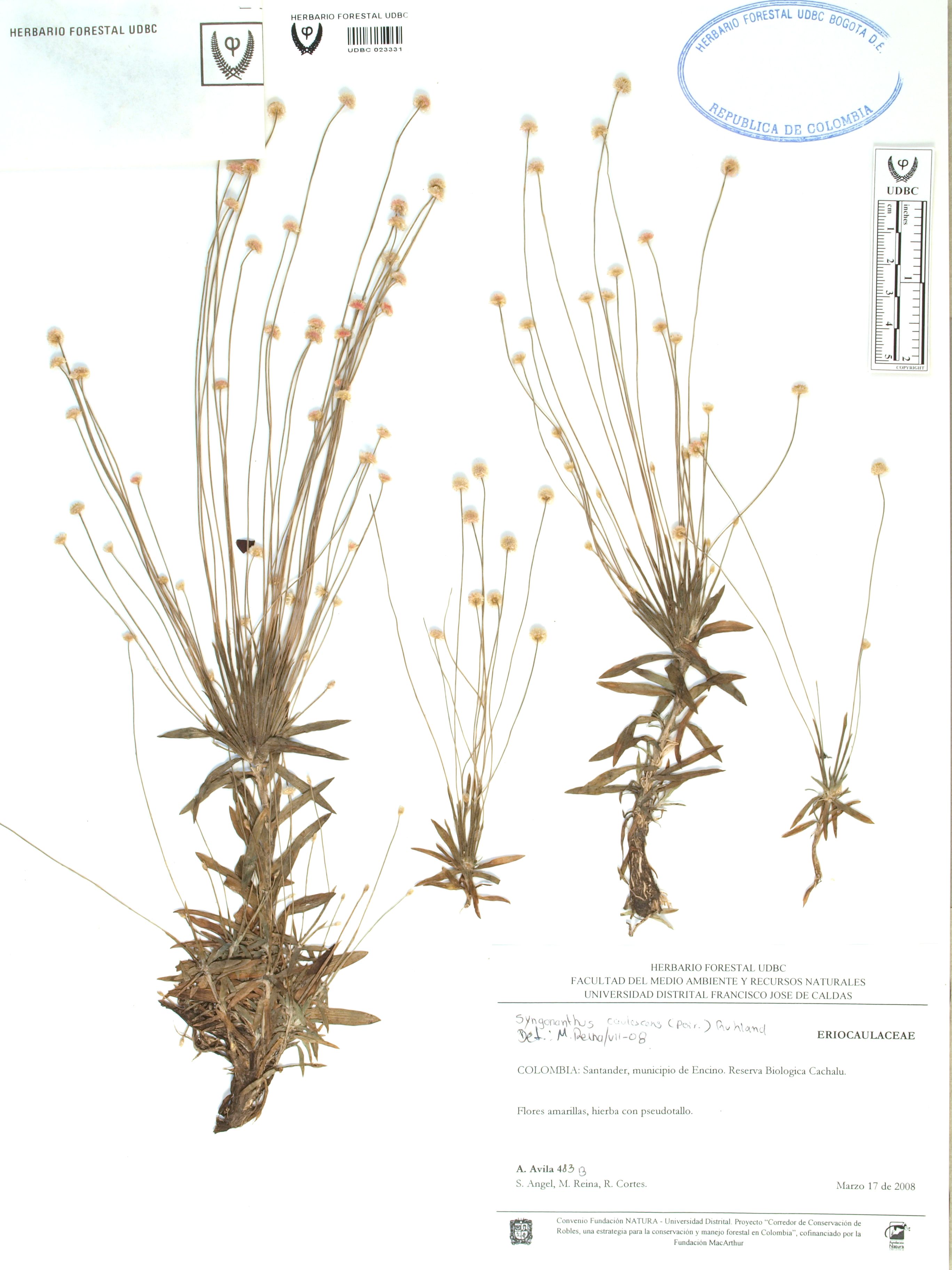 Fotografía del ejemplar Ávila, F. 483, determinado como Syngonanthus caulescens en el año 2008