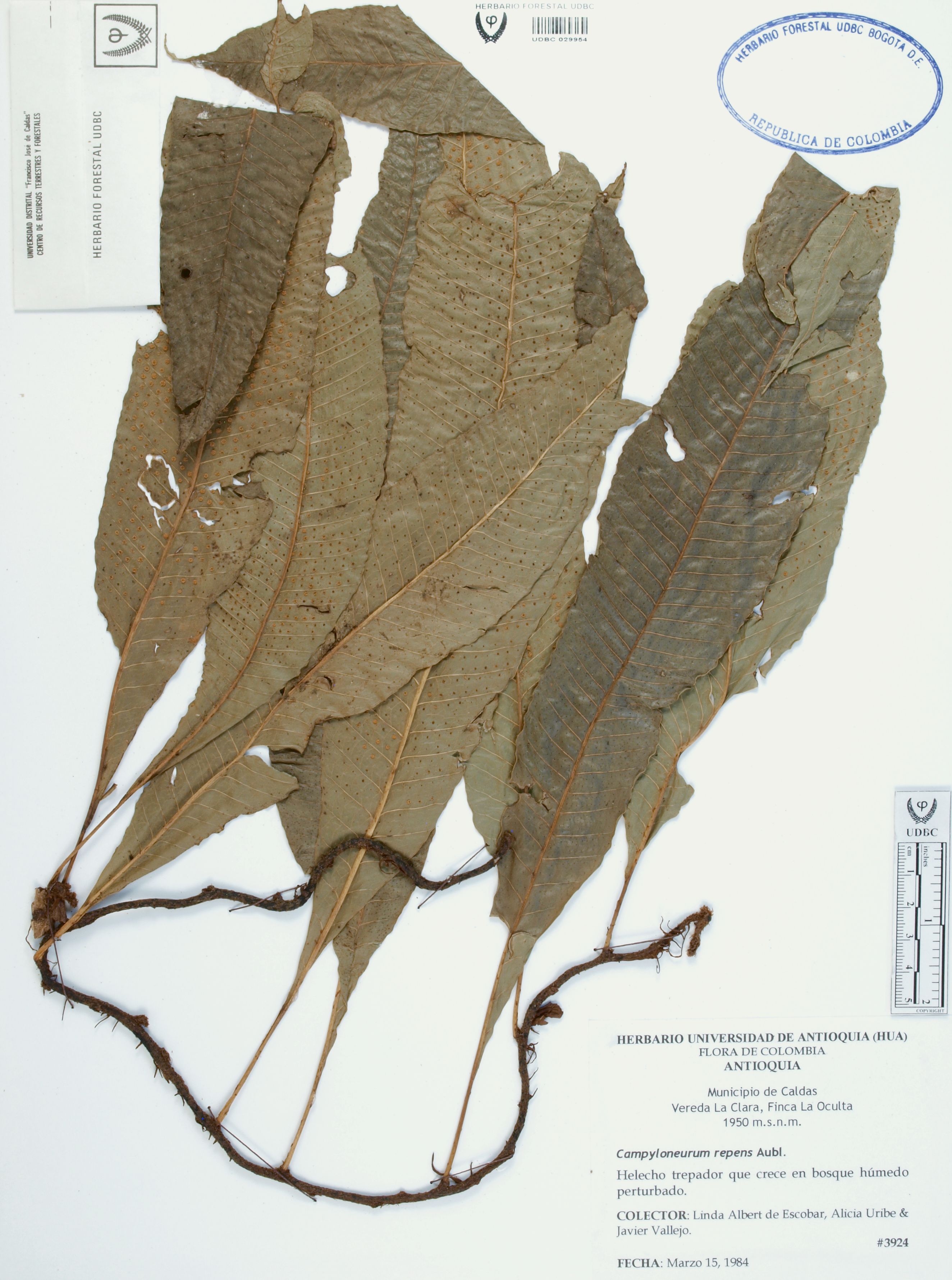 Fotografía del ejemplar Albert de E., L. 3924, determinado como Campyloneurum repens