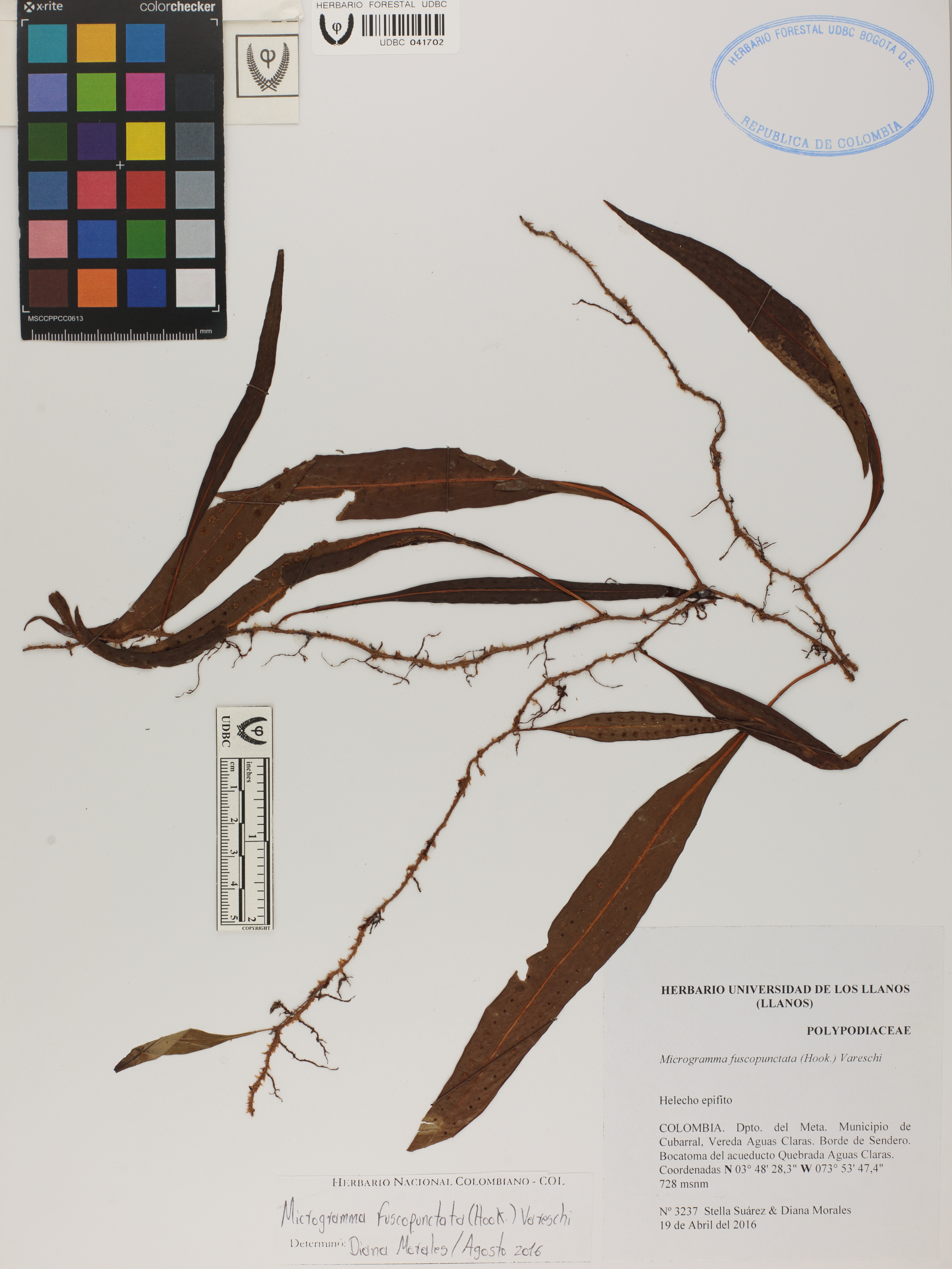 Fotografía del ejemplar Suárez, S. 3237, determinado como Microgramma fuscopunctata en el año 2016