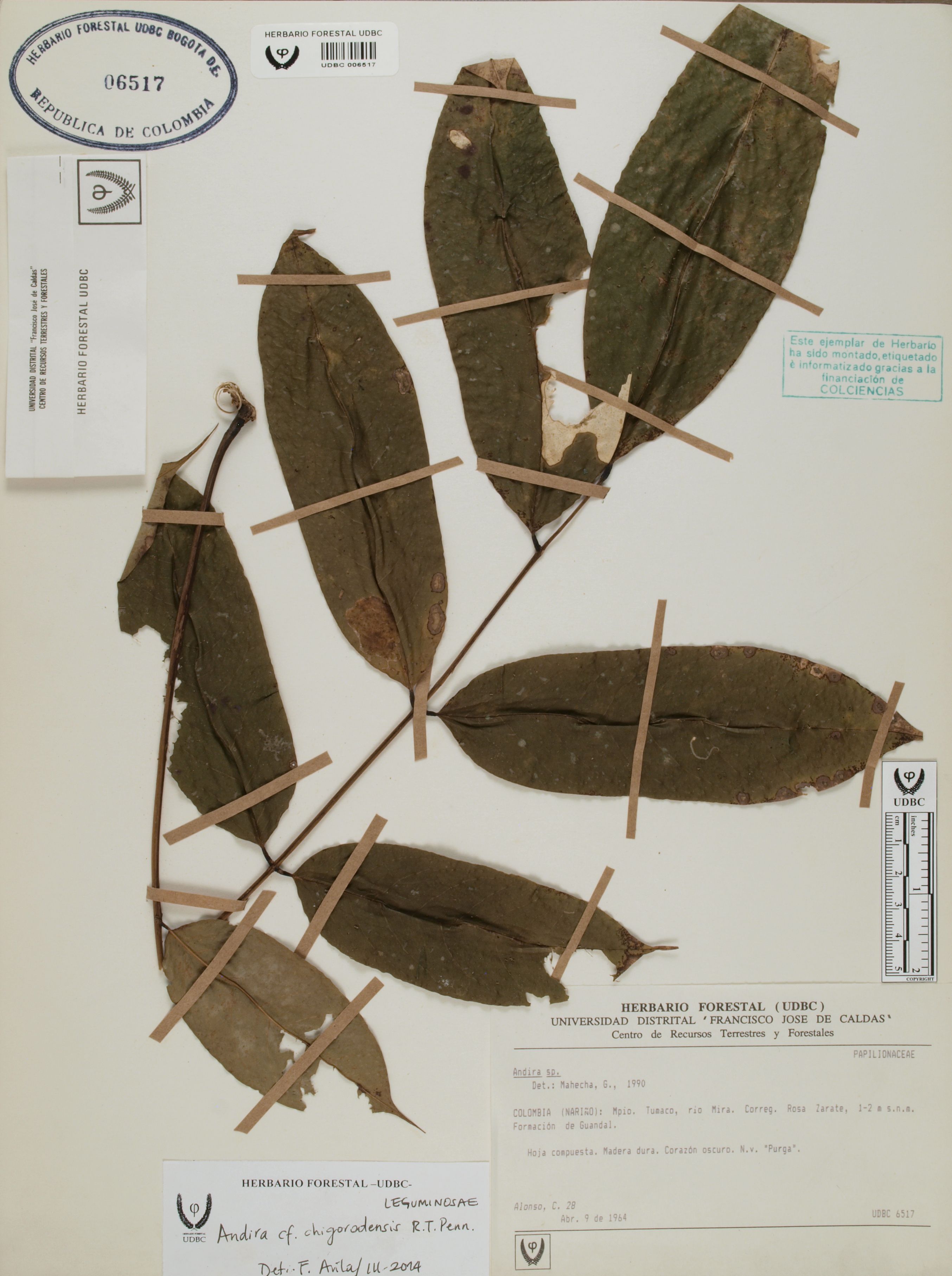 Fotografía del ejemplar Alonso, C. 28, determinado como Andira chigorodensis