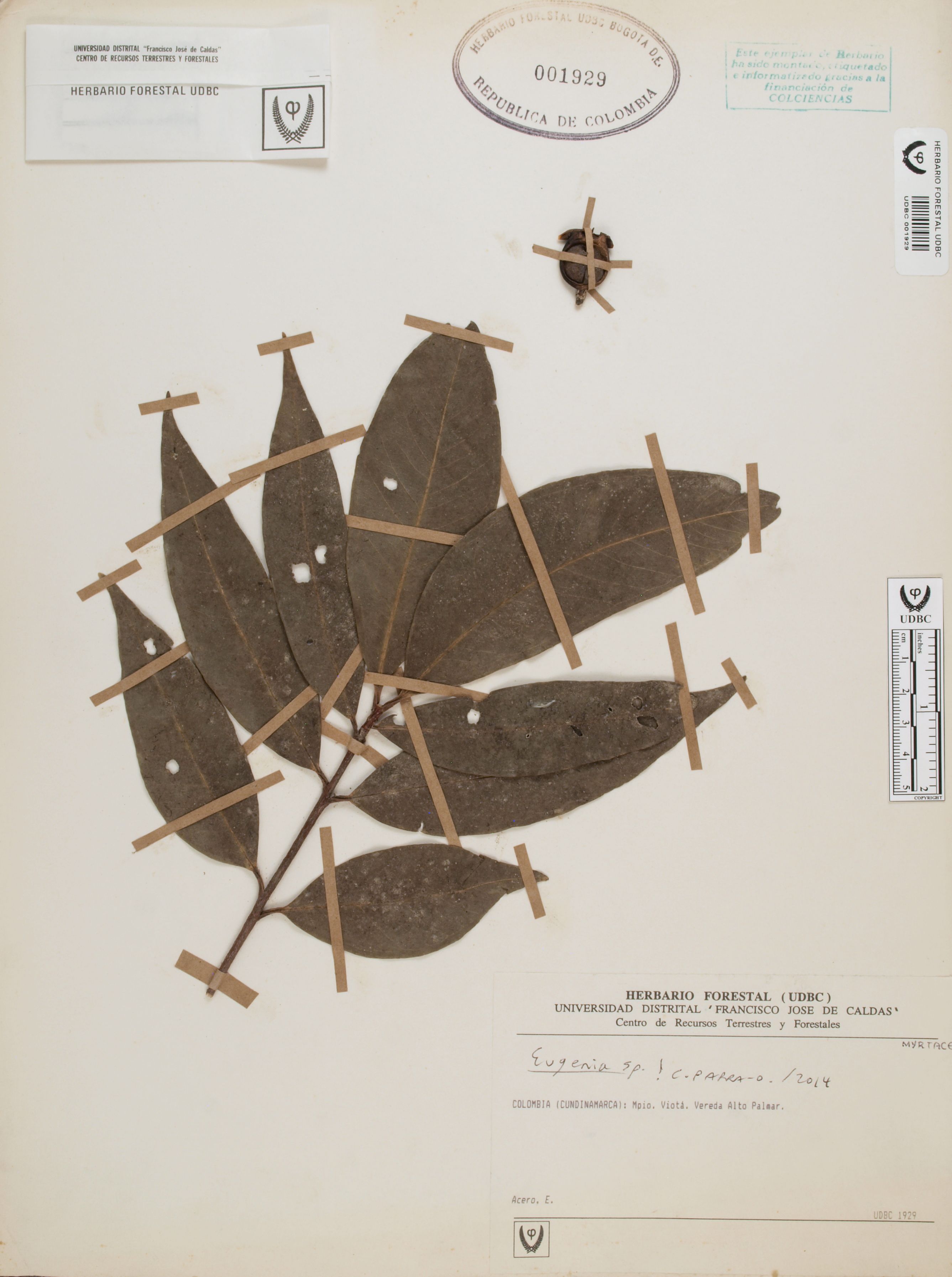 Fotografía del ejemplar Acero, E., determinado como Eugenia sp. en el año 2014
