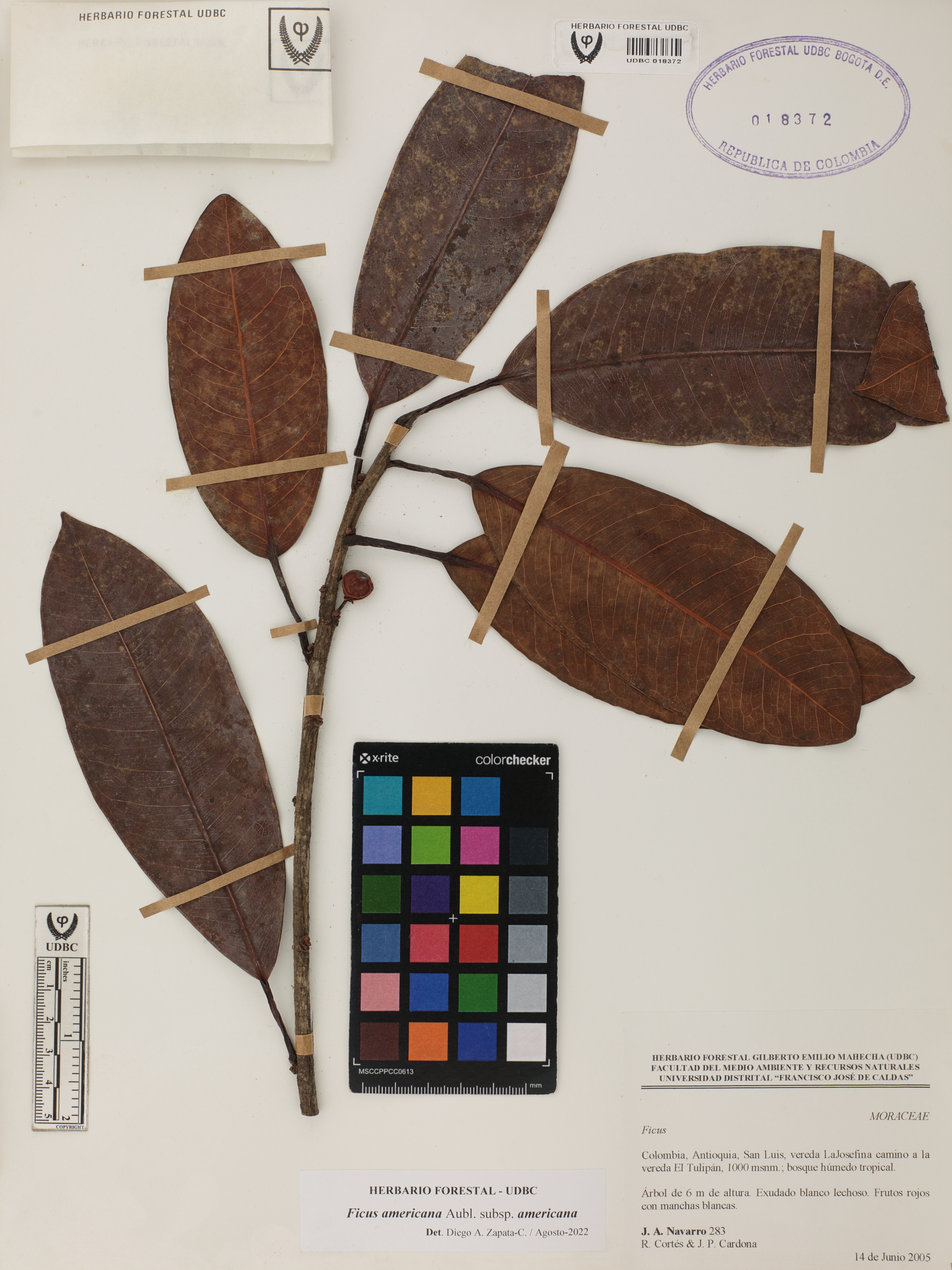 | dc.description | Fotografía del ejemplar Navarro, J. 283, determinado como Ficus americana subsp. americana en el año 2022 | |