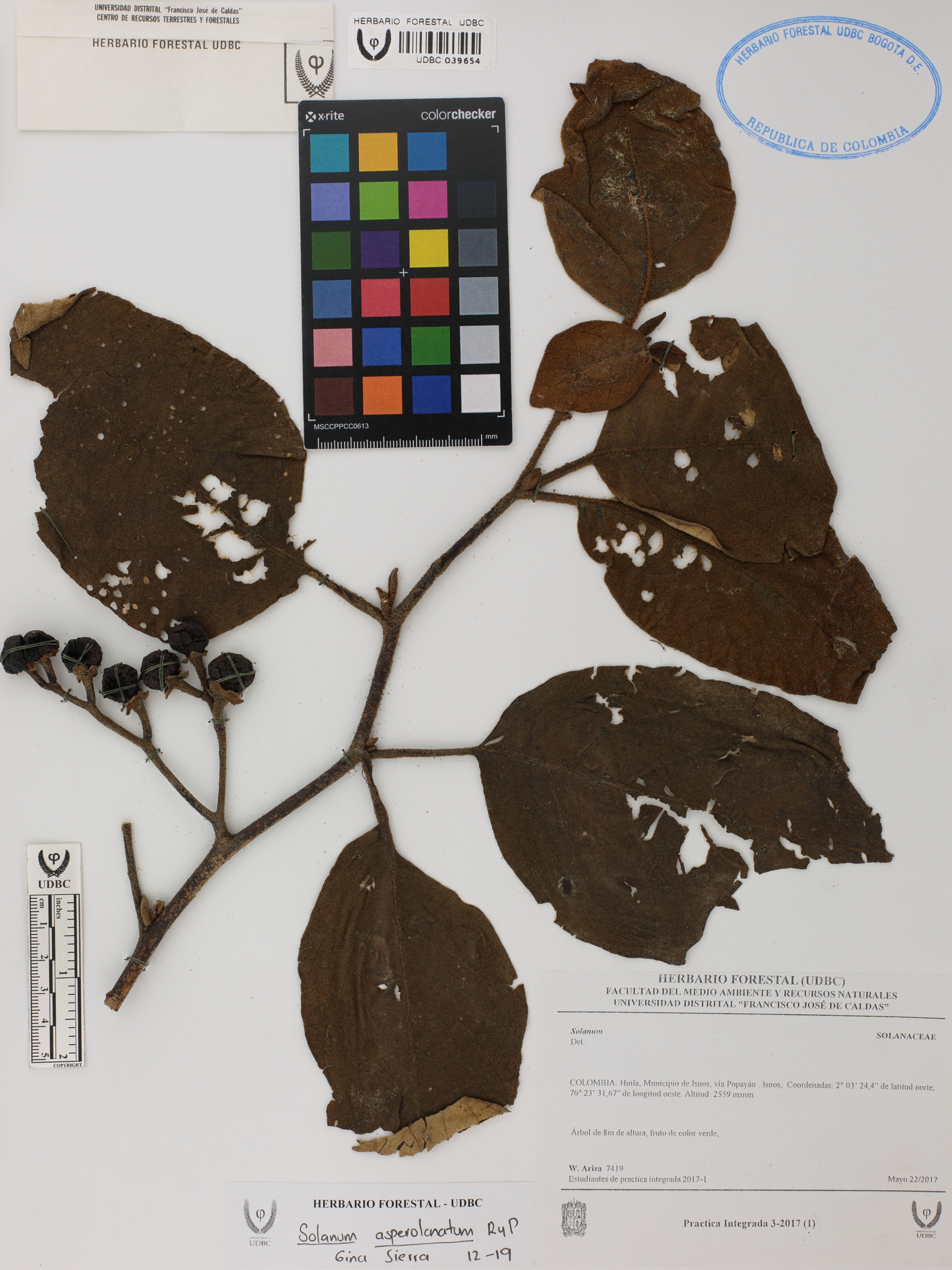 Fotografía del ejemplar Ariza, W. 7419, determinado como Solanum asperolanatum en el año 2019