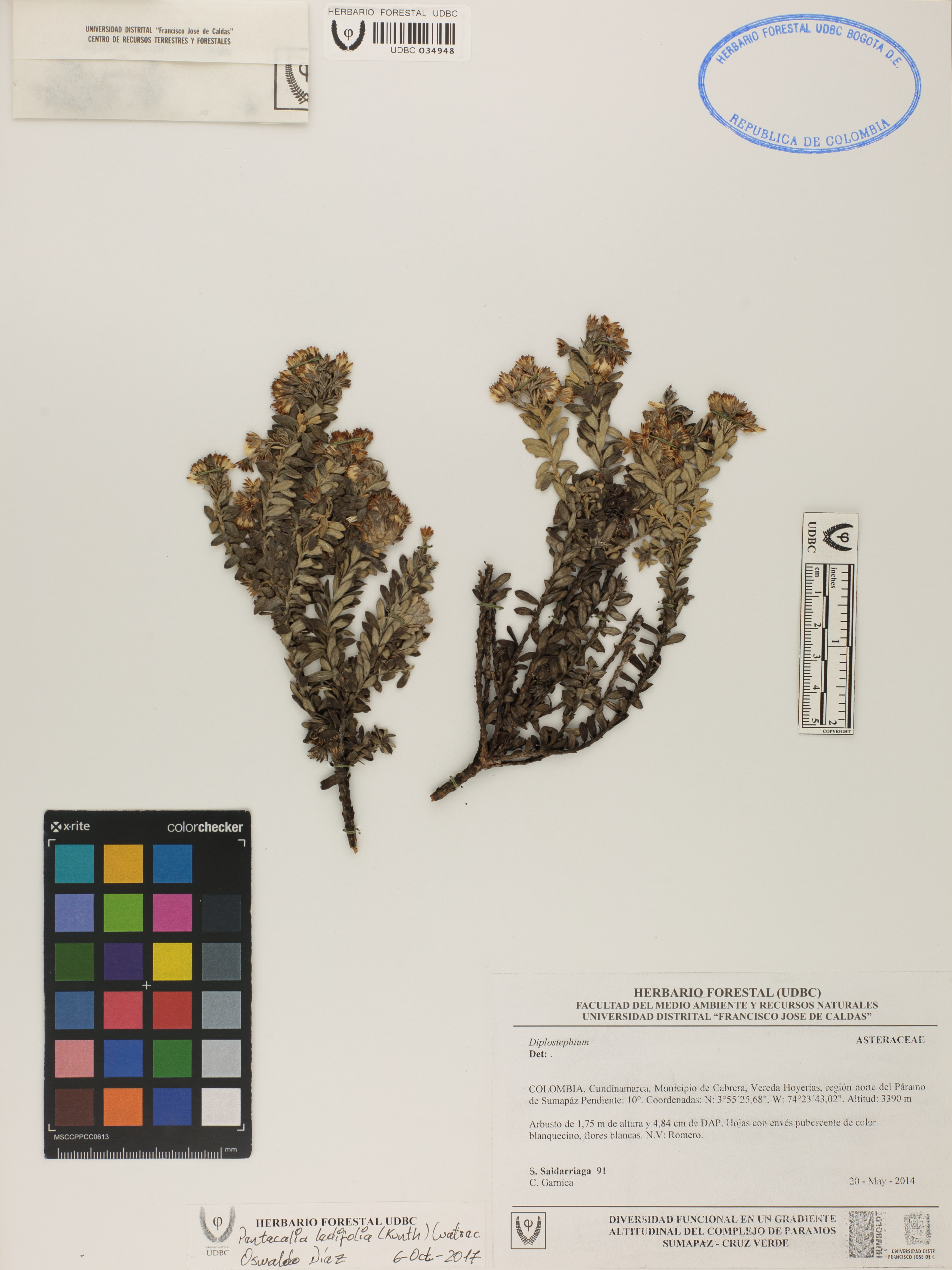 Fotografía del ejemplar Saldarriaga, S. 91, determinado como Pentacalia ledifolia en el año 2017