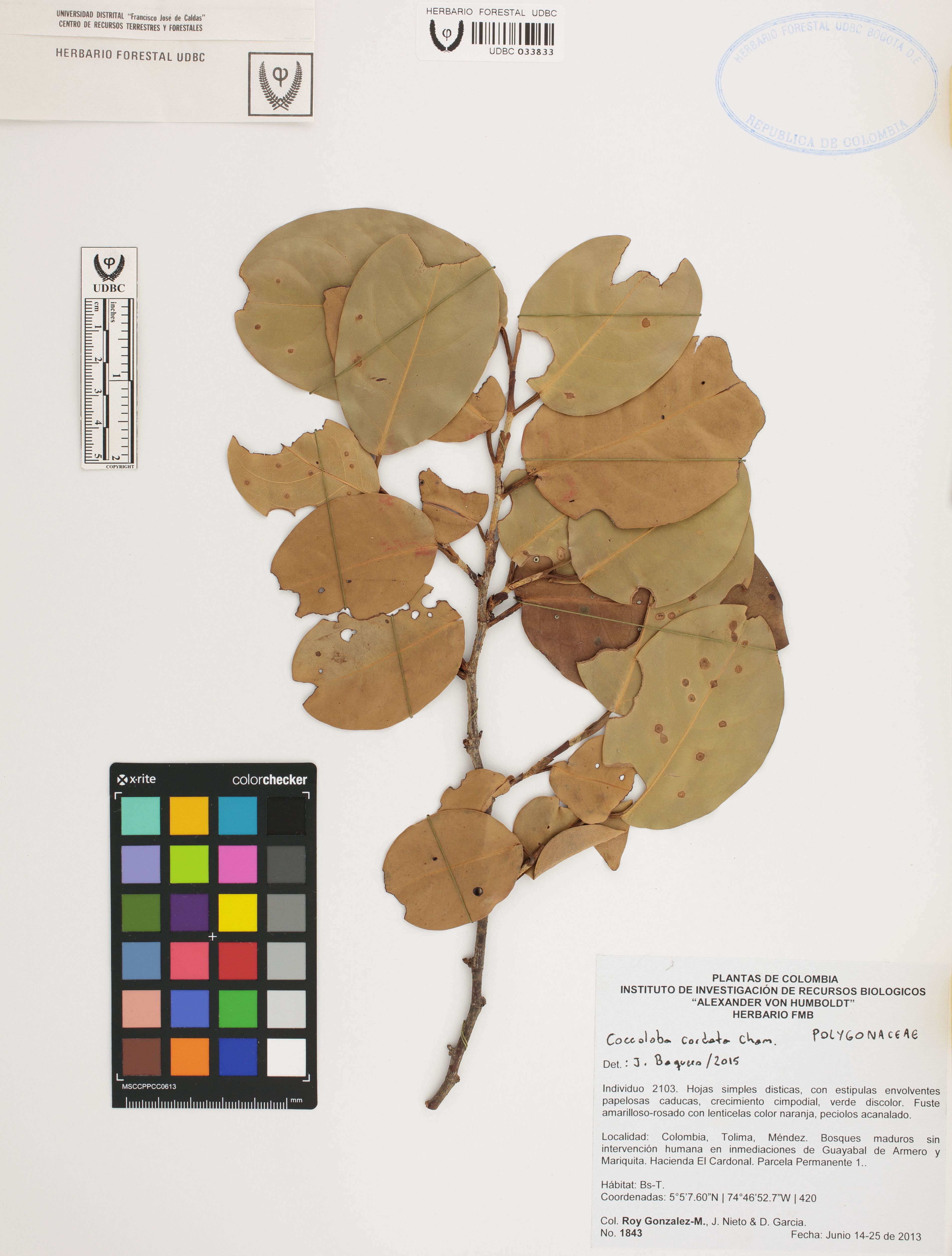 Fotografía del ejemplar González-M., R. 1843, determinado como Coccoloba cordata en el año 2015
