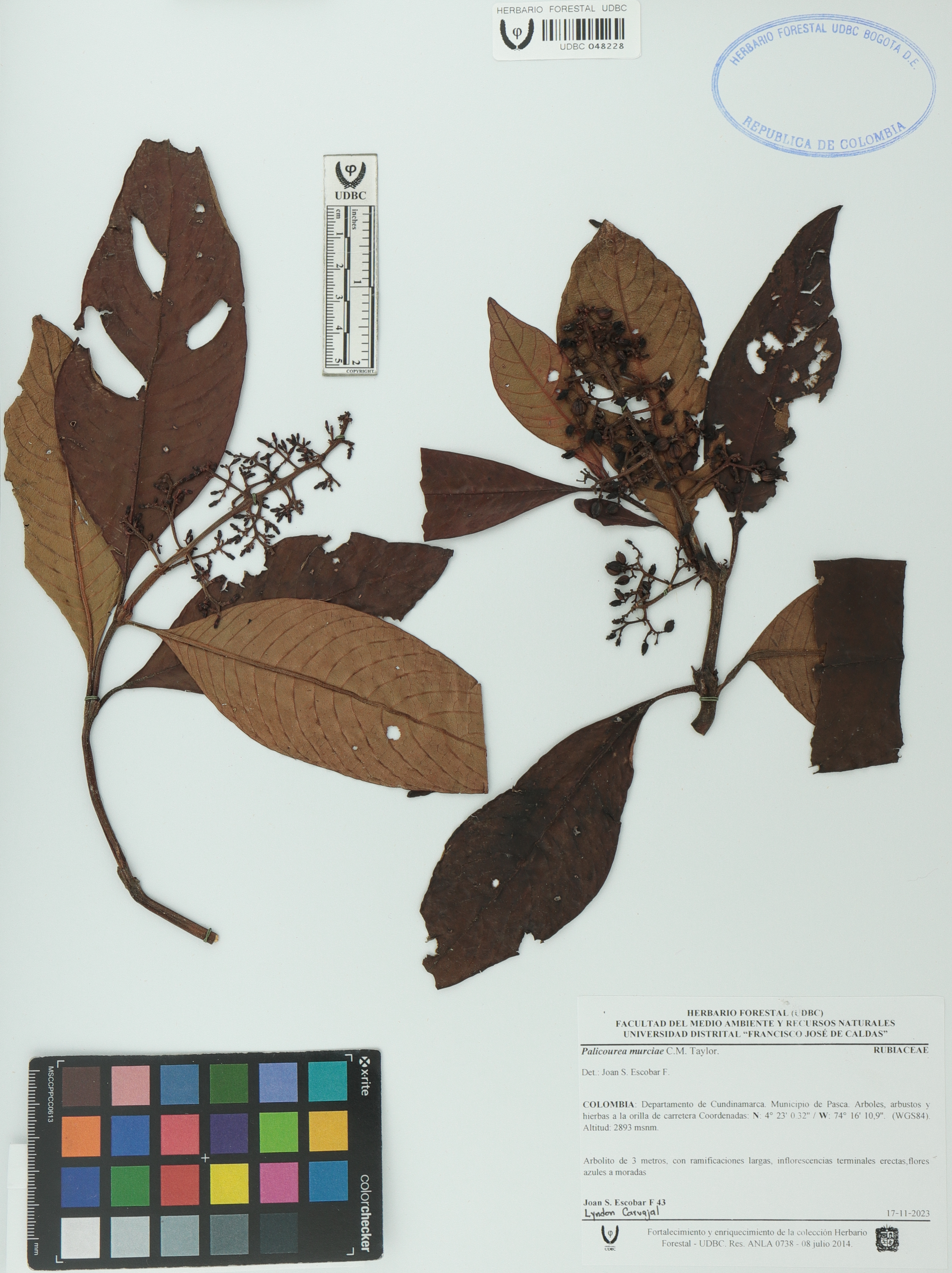 Fotografía del ejemplar Escobar, J. 43, determinado como Palicourea murciae