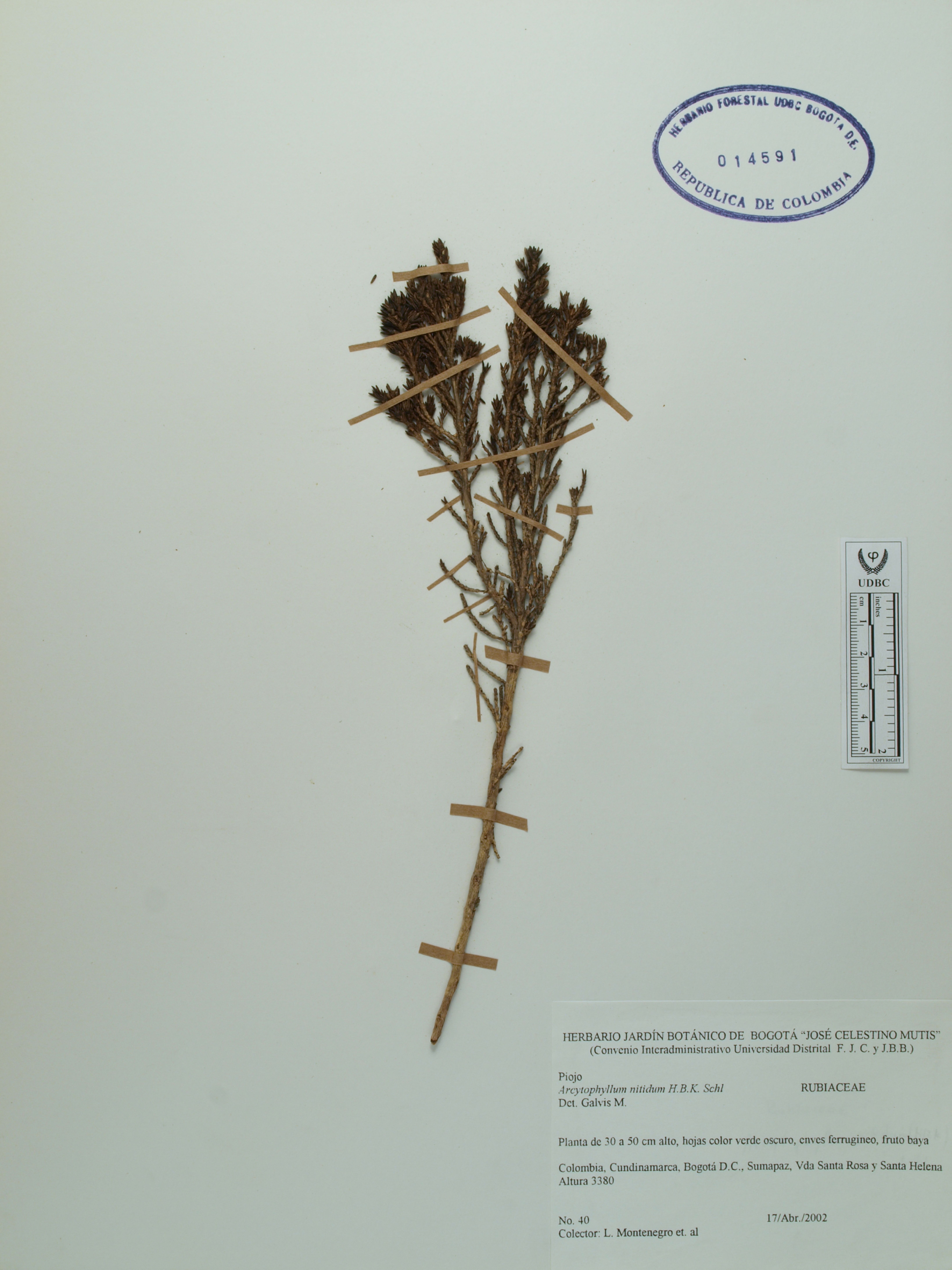 | dc.description | Fotografía del ejemplar Montenegro, L. 40, determinado como Arcytophyllum nitidum | |