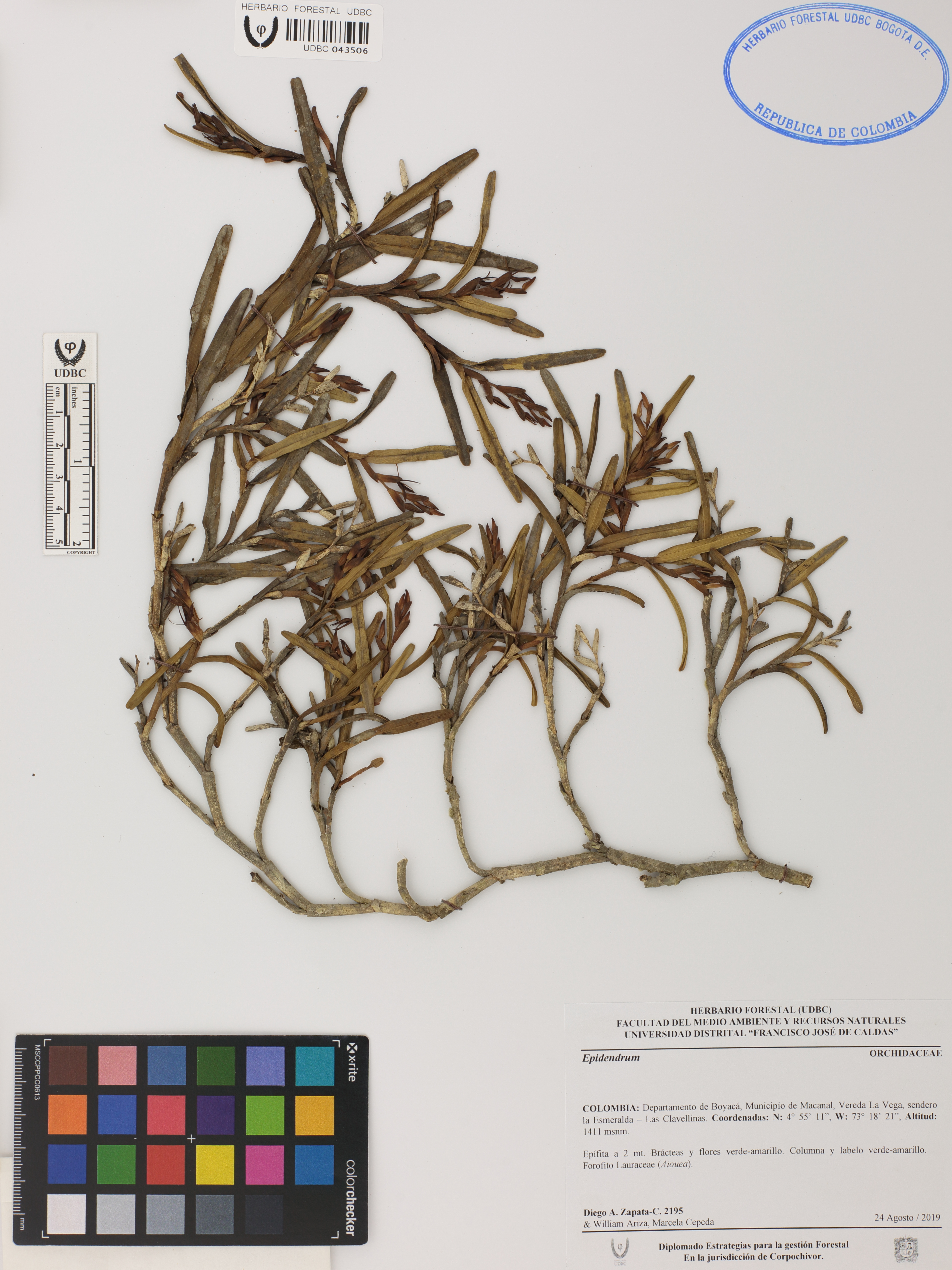 | dc.description | Fotografía del ejemplar Zapata-C., D. 2195, determinado como Epidendrum sp. | |