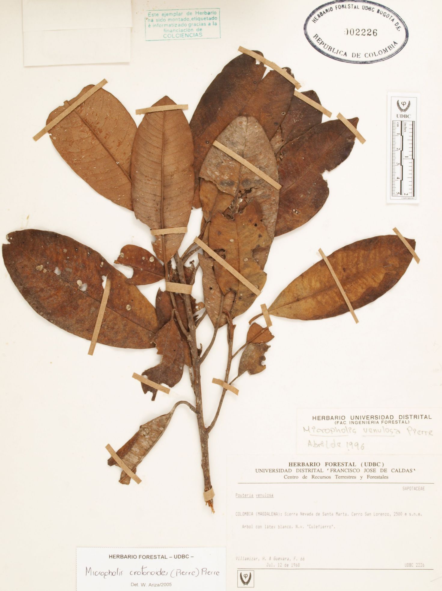 Fotografía del ejemplar Villamizar, H. 66, determinado como Micropholis crotonoides en el año 2005