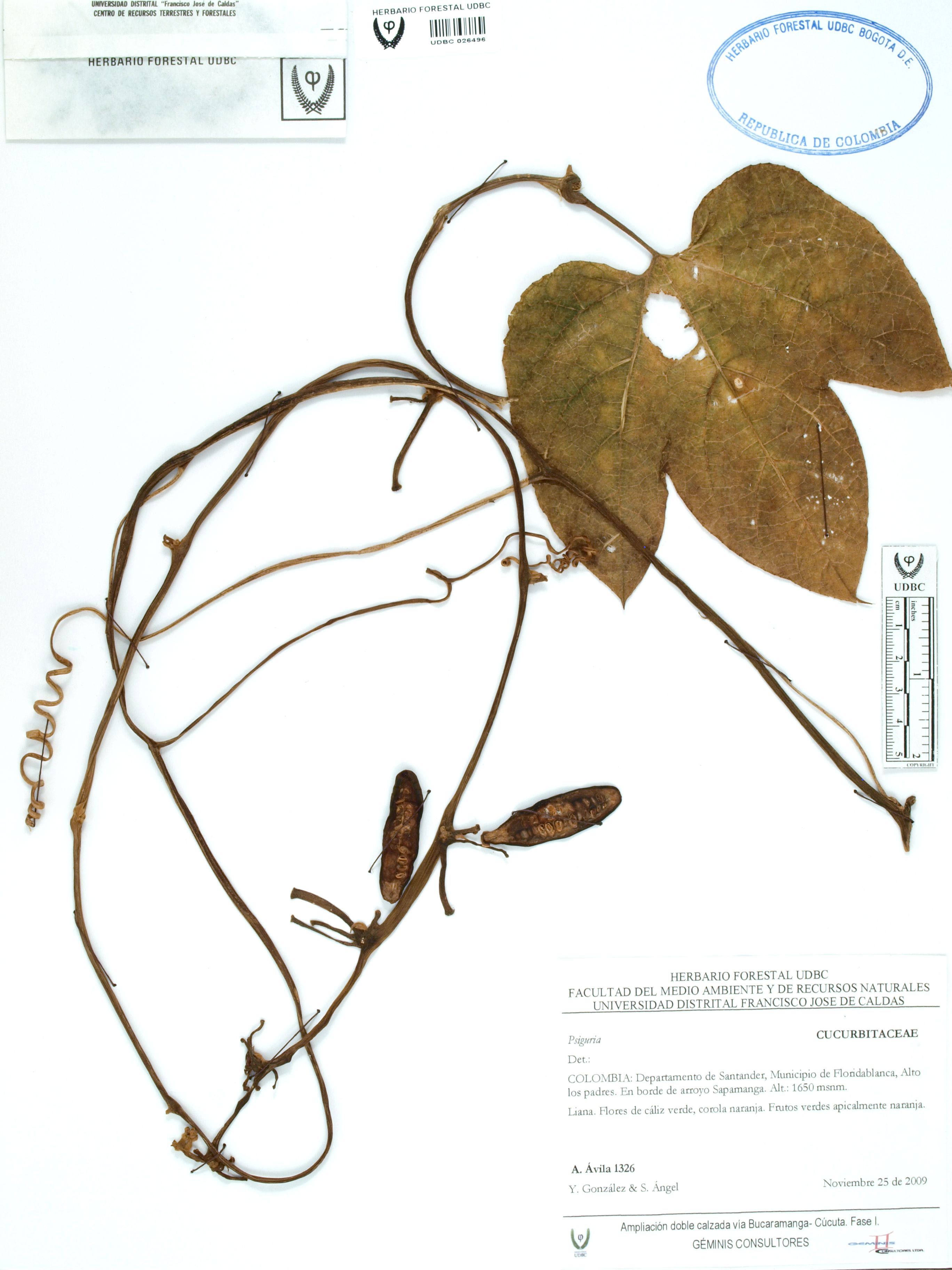 Fotografía del ejemplar Ávila, F. 1326, determinado como Psiguria sp.