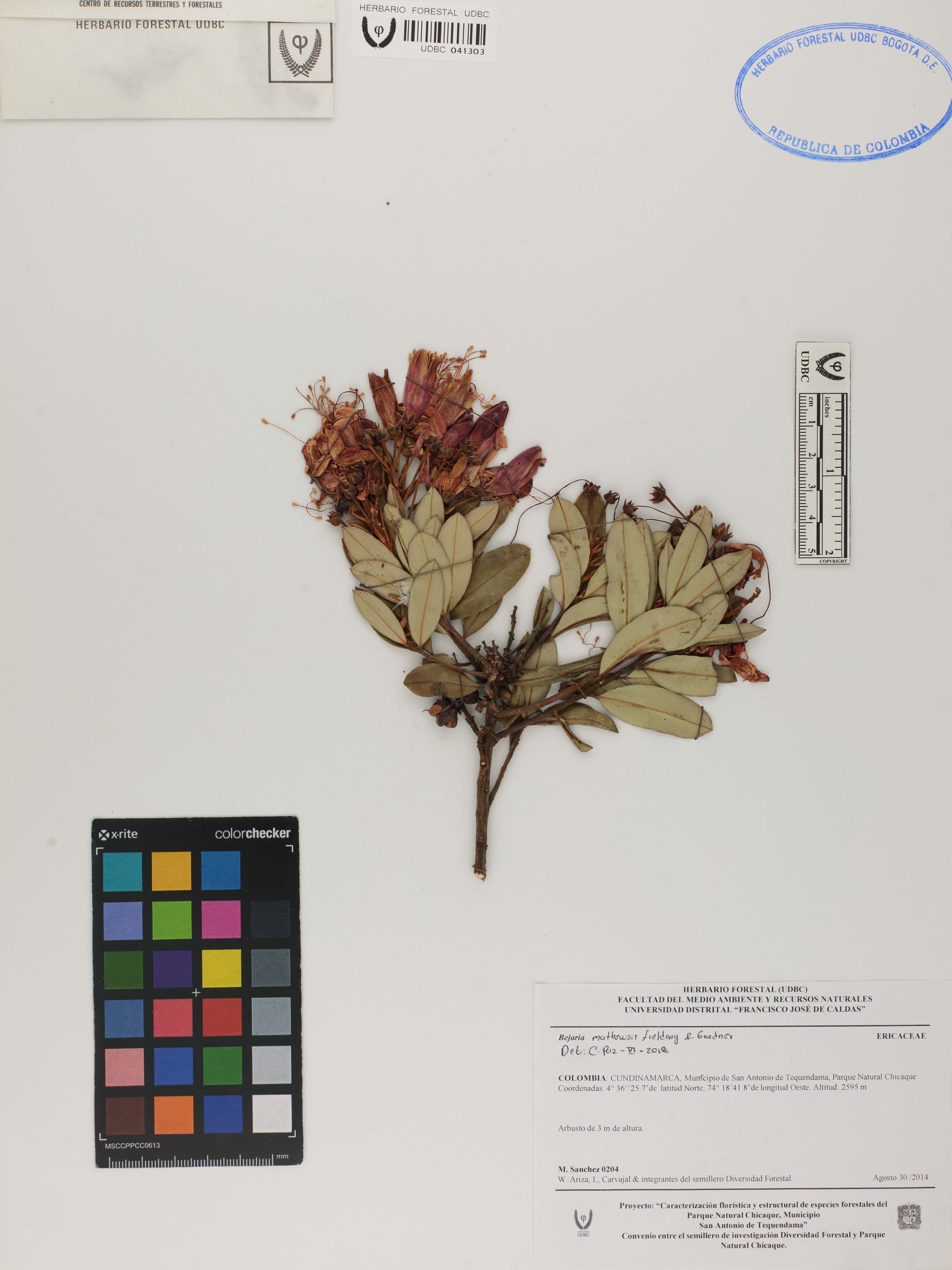 | dc.description | Fotografía del ejemplar Sánchez, M. 204, determinado como Bejaria mathewsii en el año 2018 | |