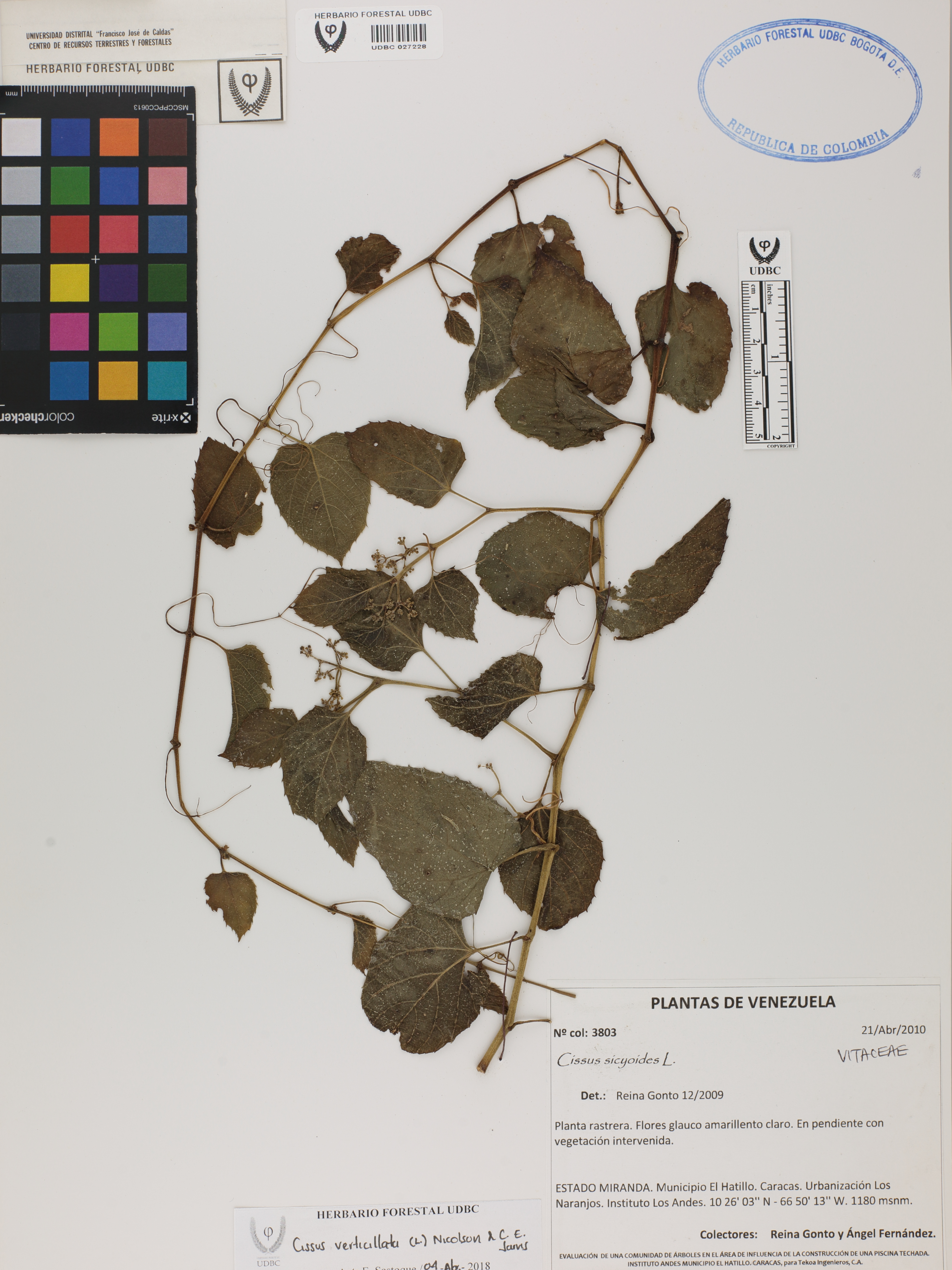 | dc.description | Fotografía del ejemplar Gonto, R. 3803, determinado como Cissus verticillata en el año 2009 | |