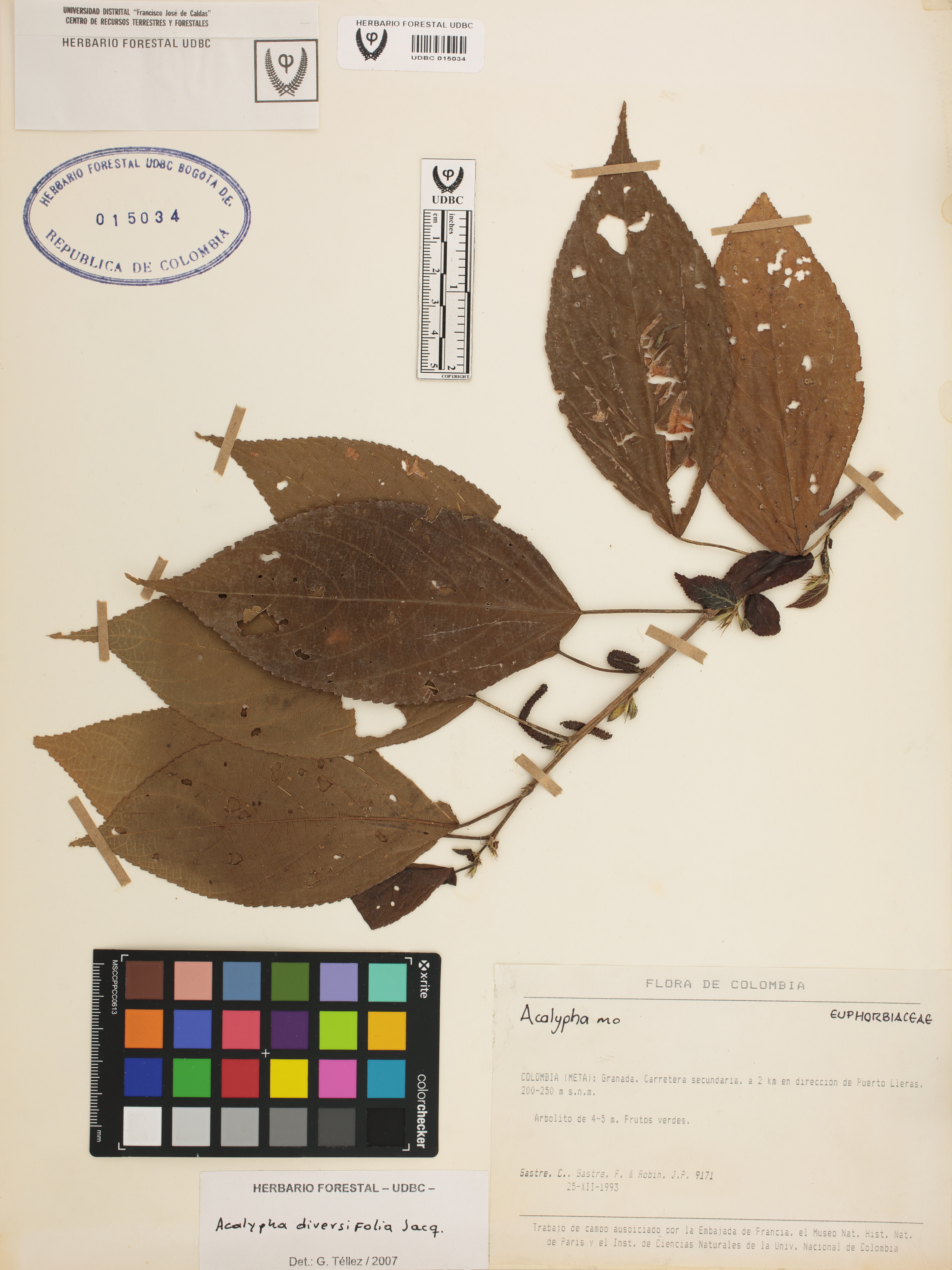 Fotografía del ejemplar Sastre, C. 9171, determinado como Acalypha diversifolia en el año 2007