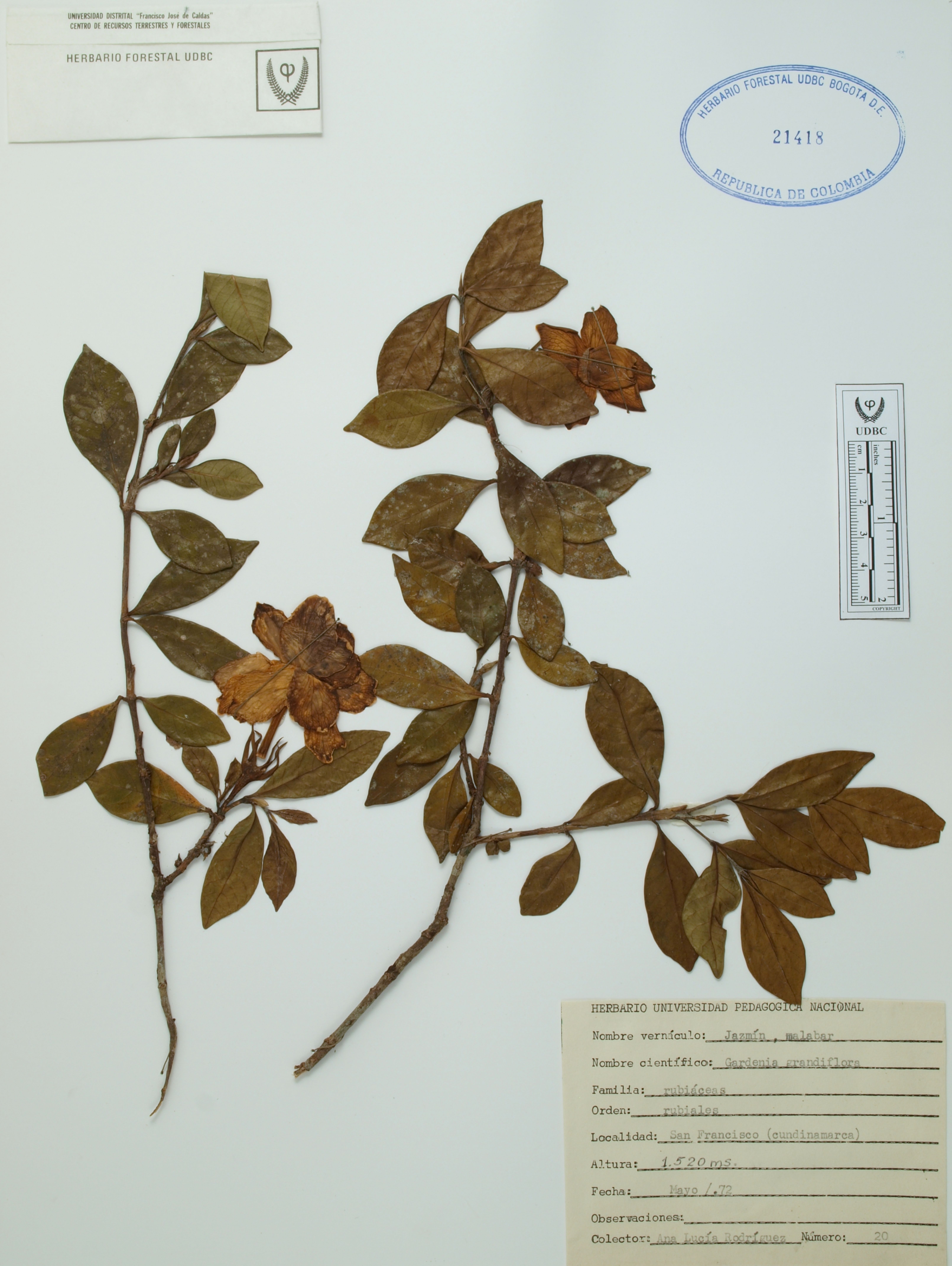 Fotografía del ejemplar Rodríguez, A., determinado como Gardenia grandiflora