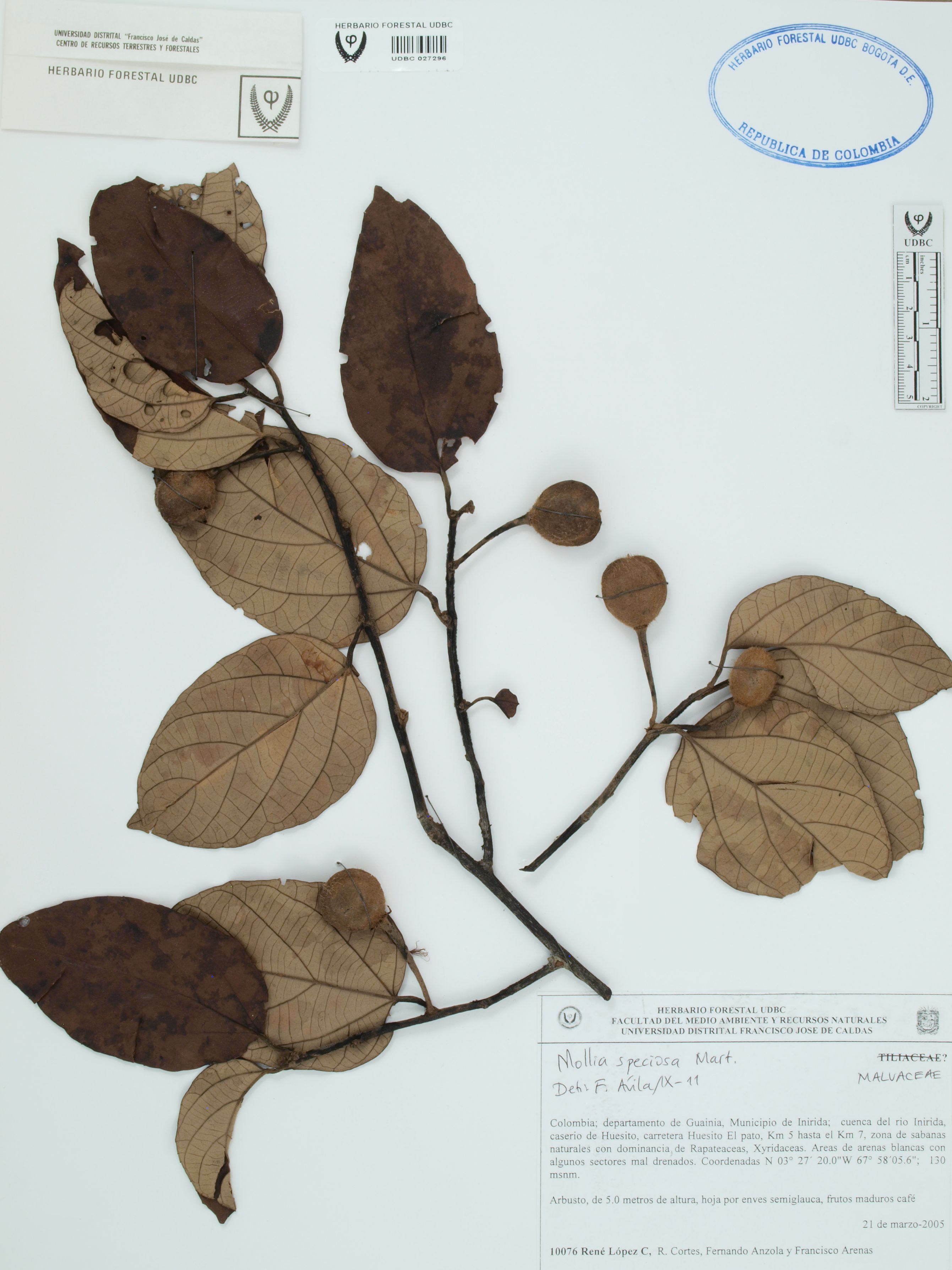 Fotografía del ejemplar López, R. 10076, determinado como Mollia speciosa en el año 2011