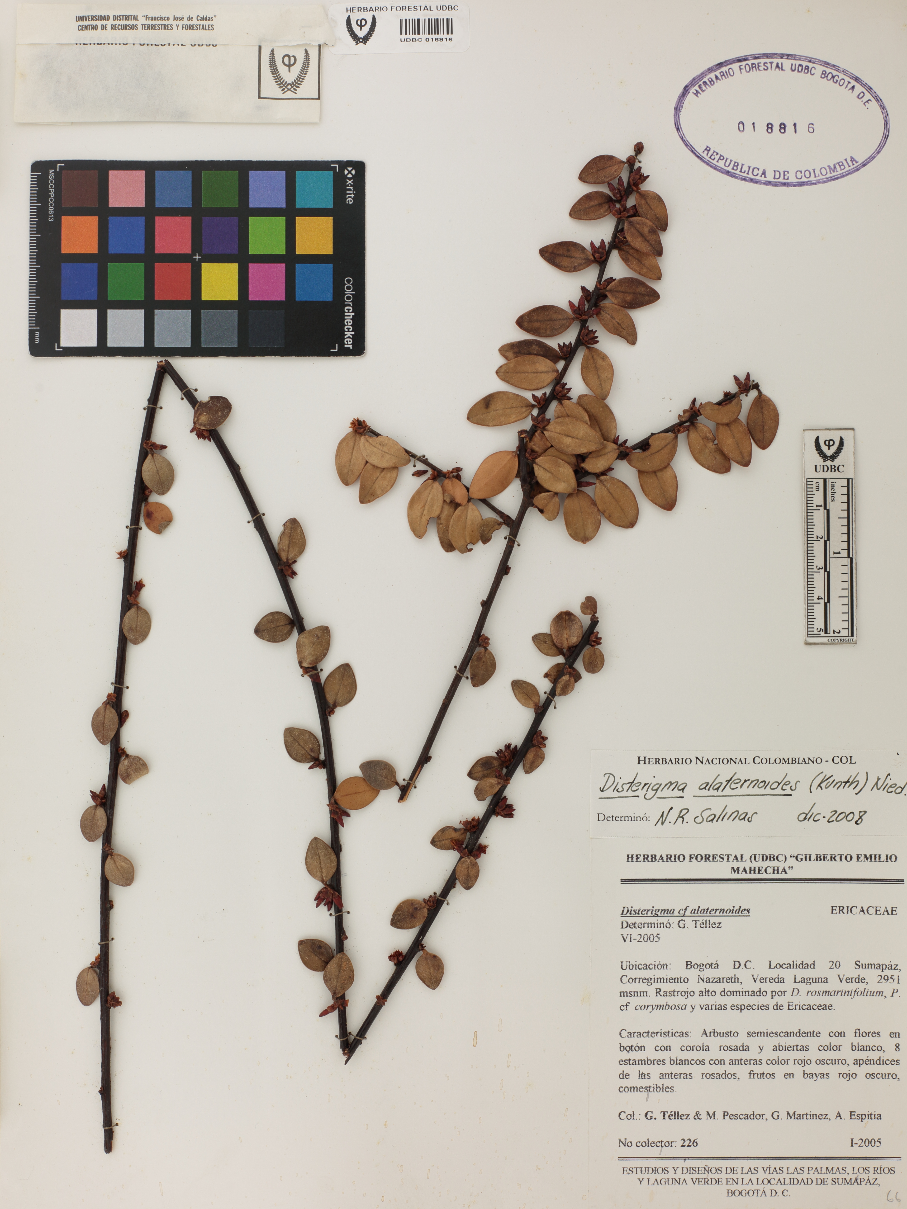 Fotografía del ejemplar Téllez, G. 226, determinado como Disterigma alaternoides en el año 2008