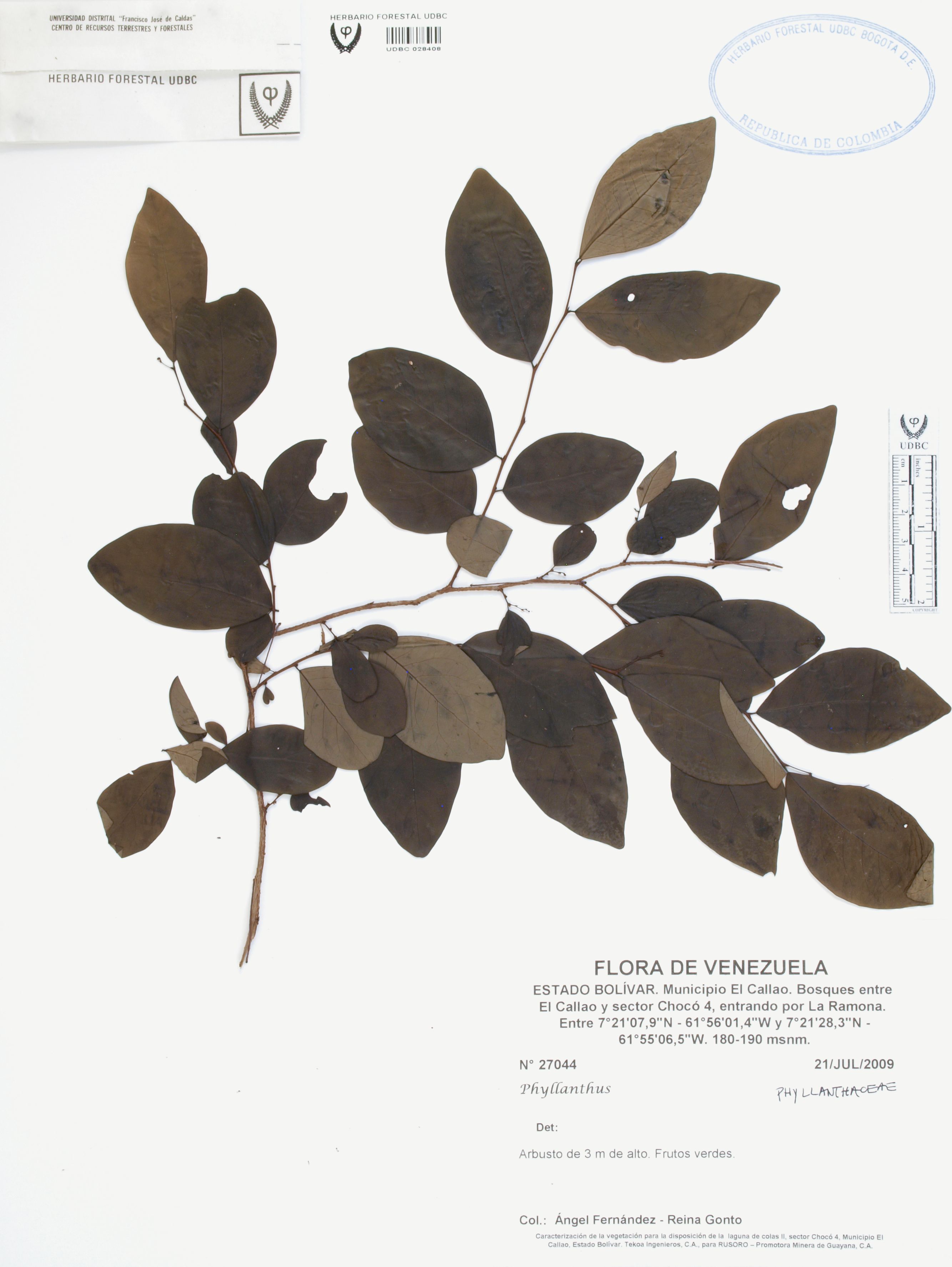 Fotografía del ejemplar Fernández, A. 27044, determinado como Phyllanthus sp.