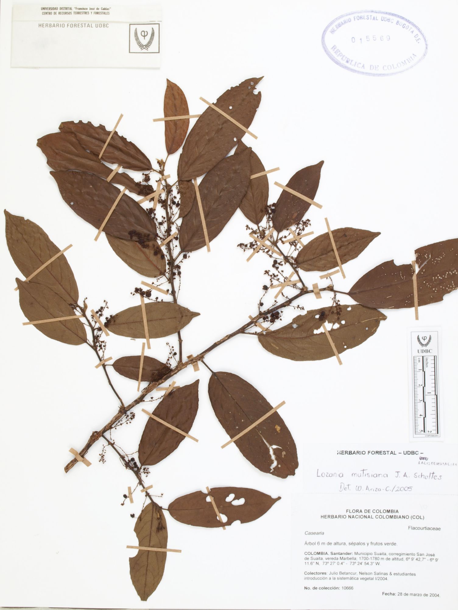 Fotografía del ejemplar Betancur, J. 10666, determinado como Lozania mutisiana en el año 2005