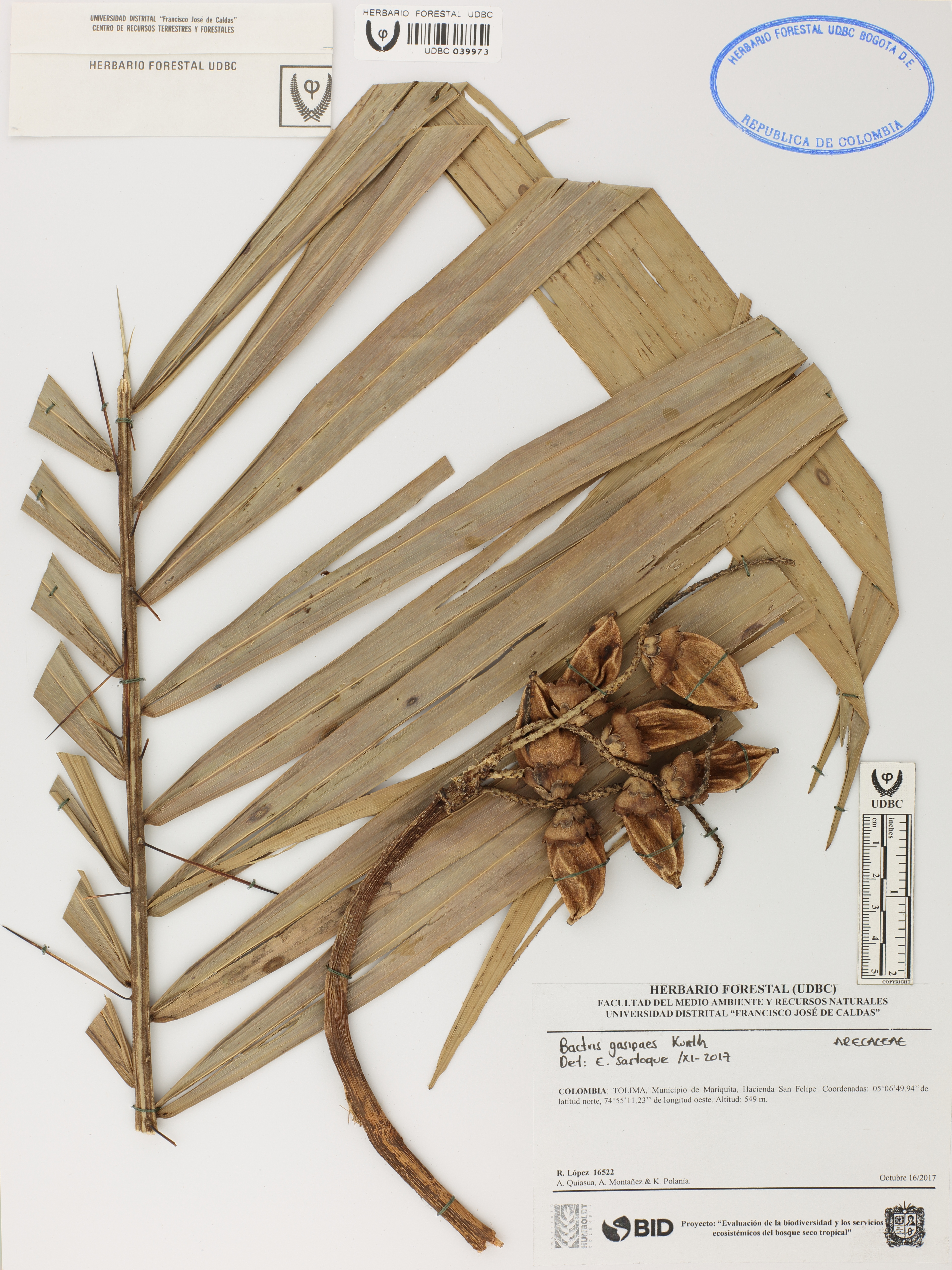 | dc.description | Fotografía del ejemplar López, R. 16522, determinado como Bactris gasipaes en el año 2017 | |