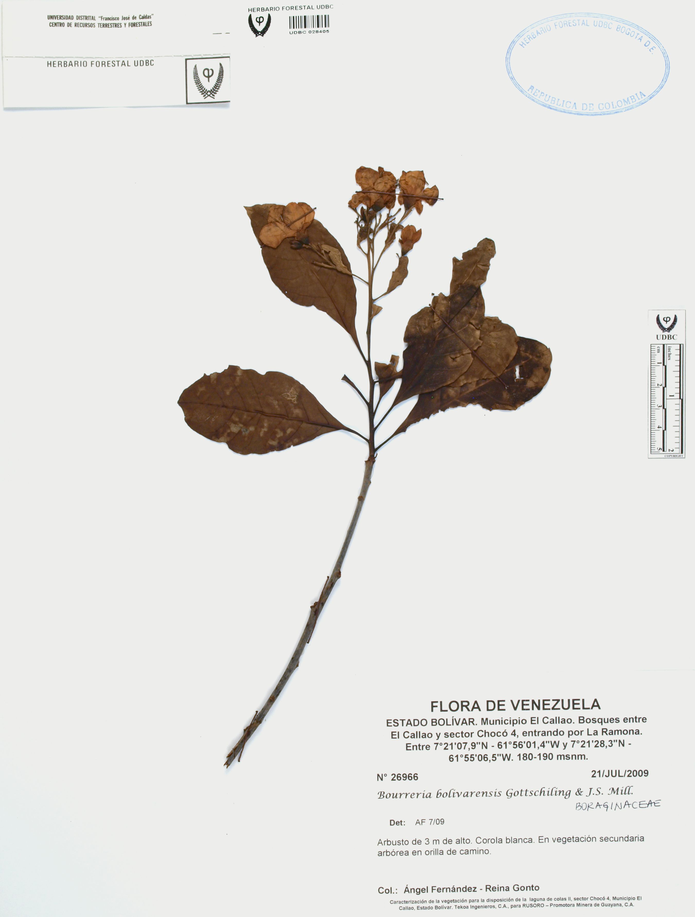Fotografía del ejemplar Fernández, A. 26966, determinado como Bourreria bolivarensis en el año 2009