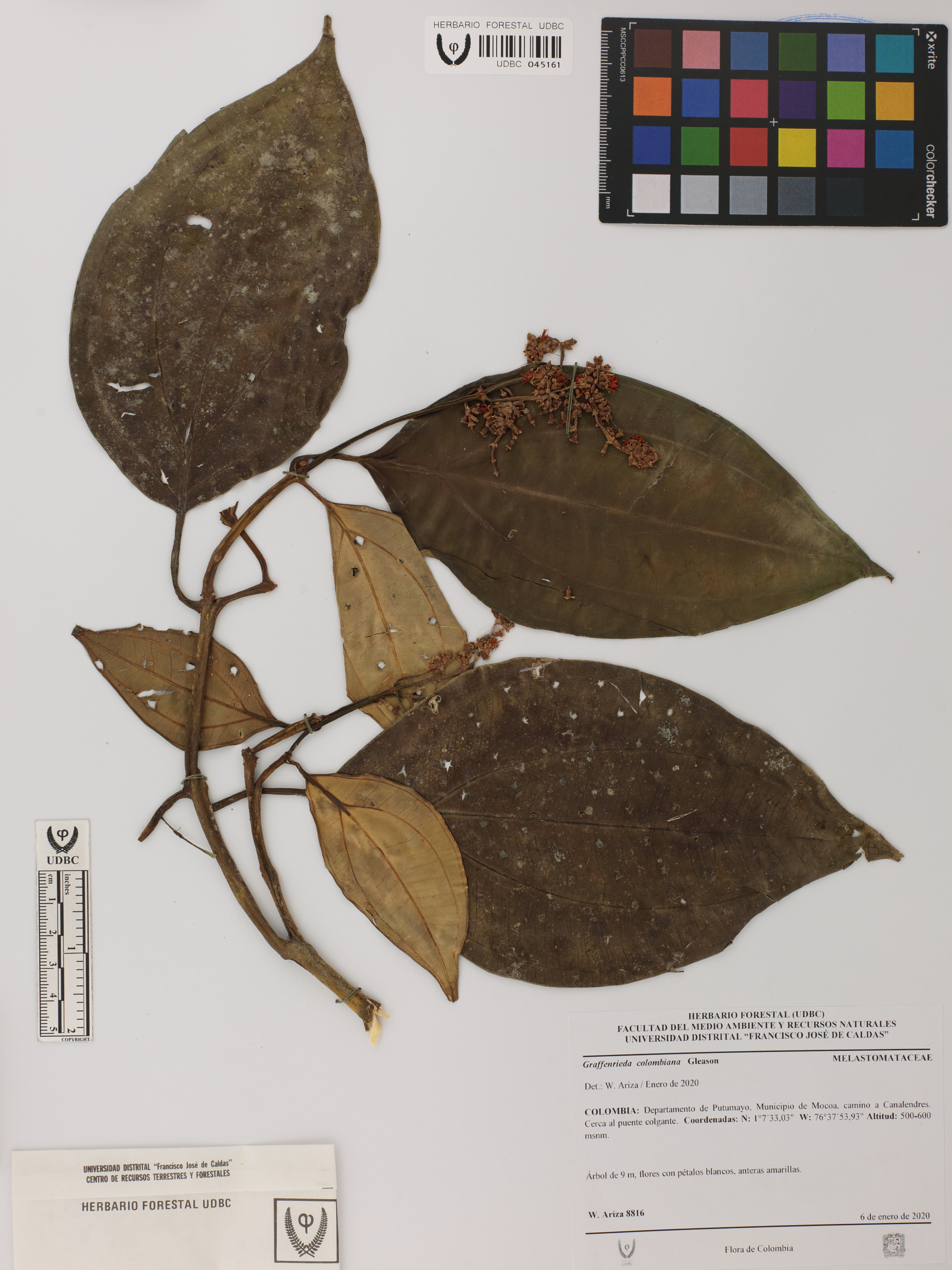| dc.description | Fotografía del ejemplar Ariza-Cortés, W. 8816a, determinado como Graffenrieda colombiana en el año 2020 | |