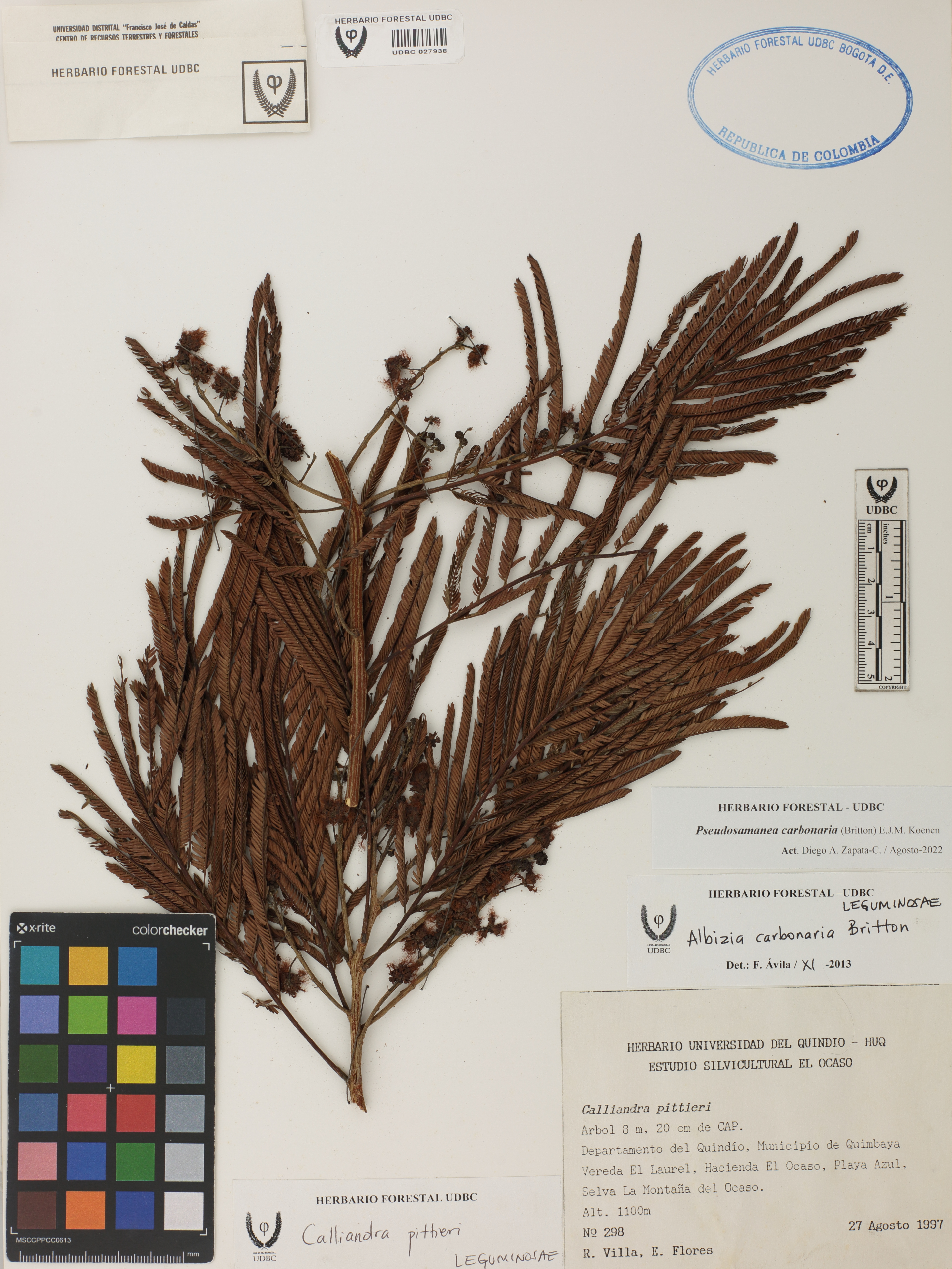 Fotografía del ejemplar Villa, R. 298, determinado como Pseudosamanea carbonaria en el año 2013