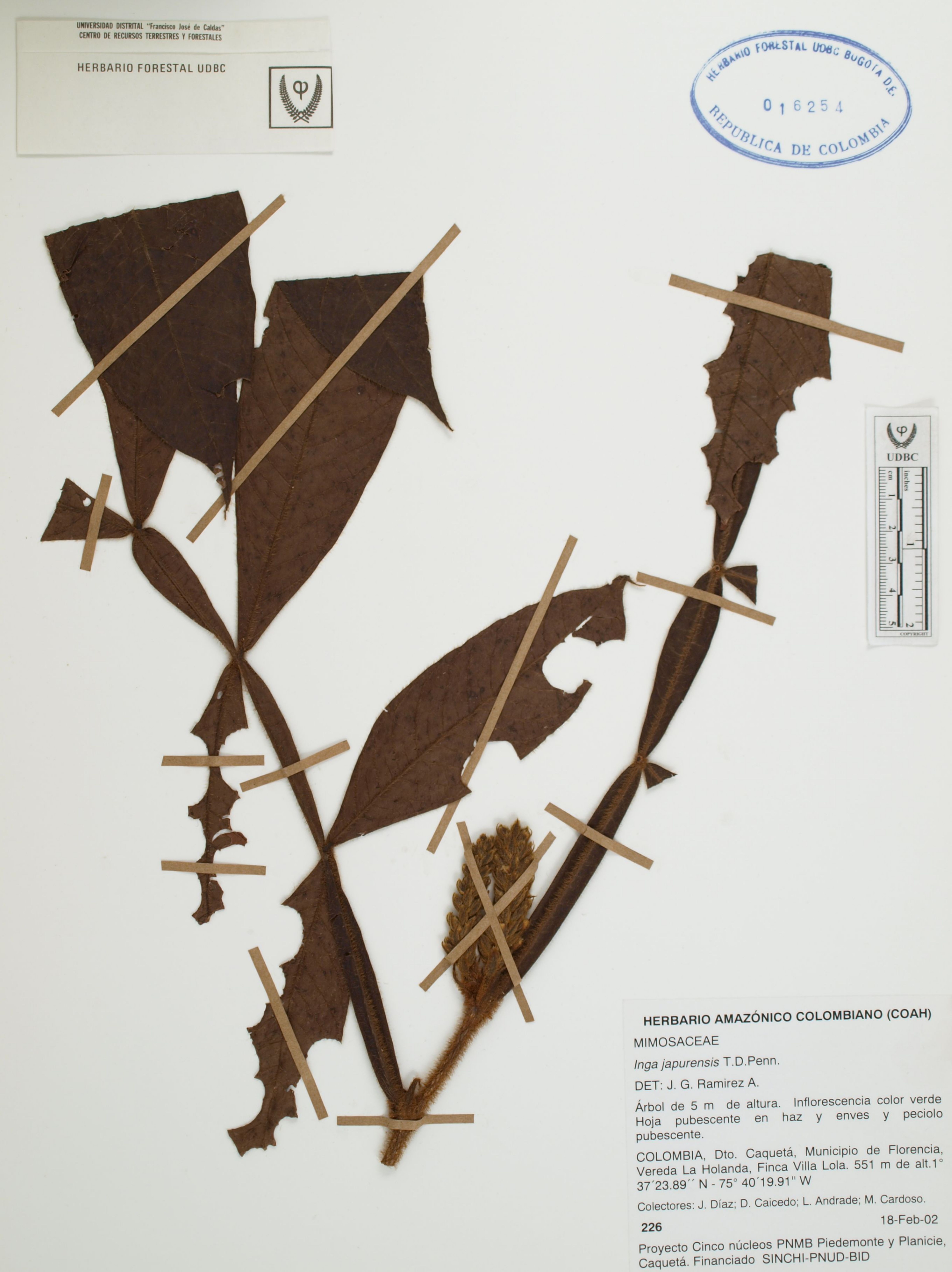 | dc.description | Fotografía del ejemplar Díaz, J. 226, determinado como Inga japurensis | |