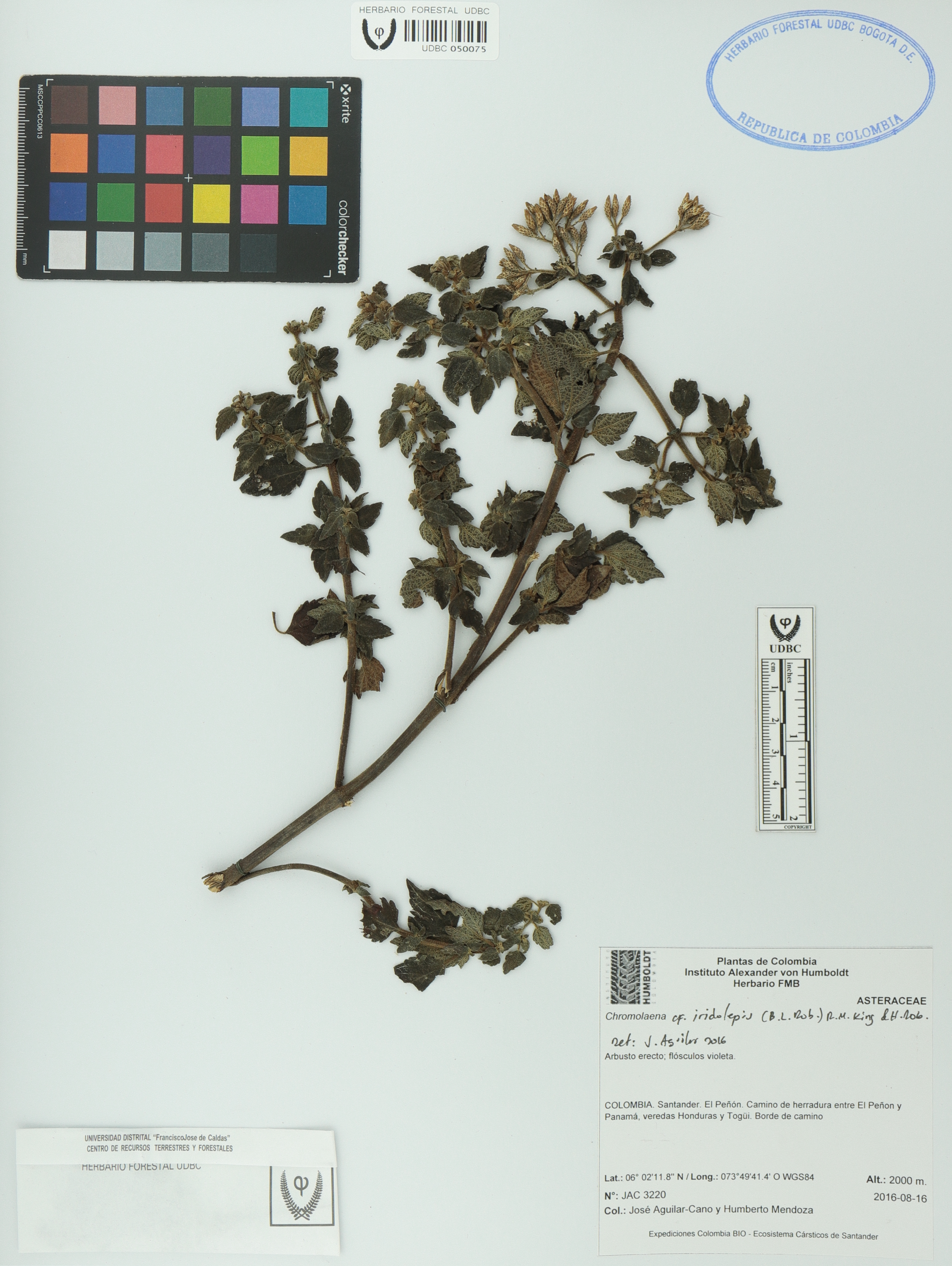 Fotografía del ejemplar Aguilar-Cano, J. 3220, determinado como Chromolaena iridolepis en el año 2016