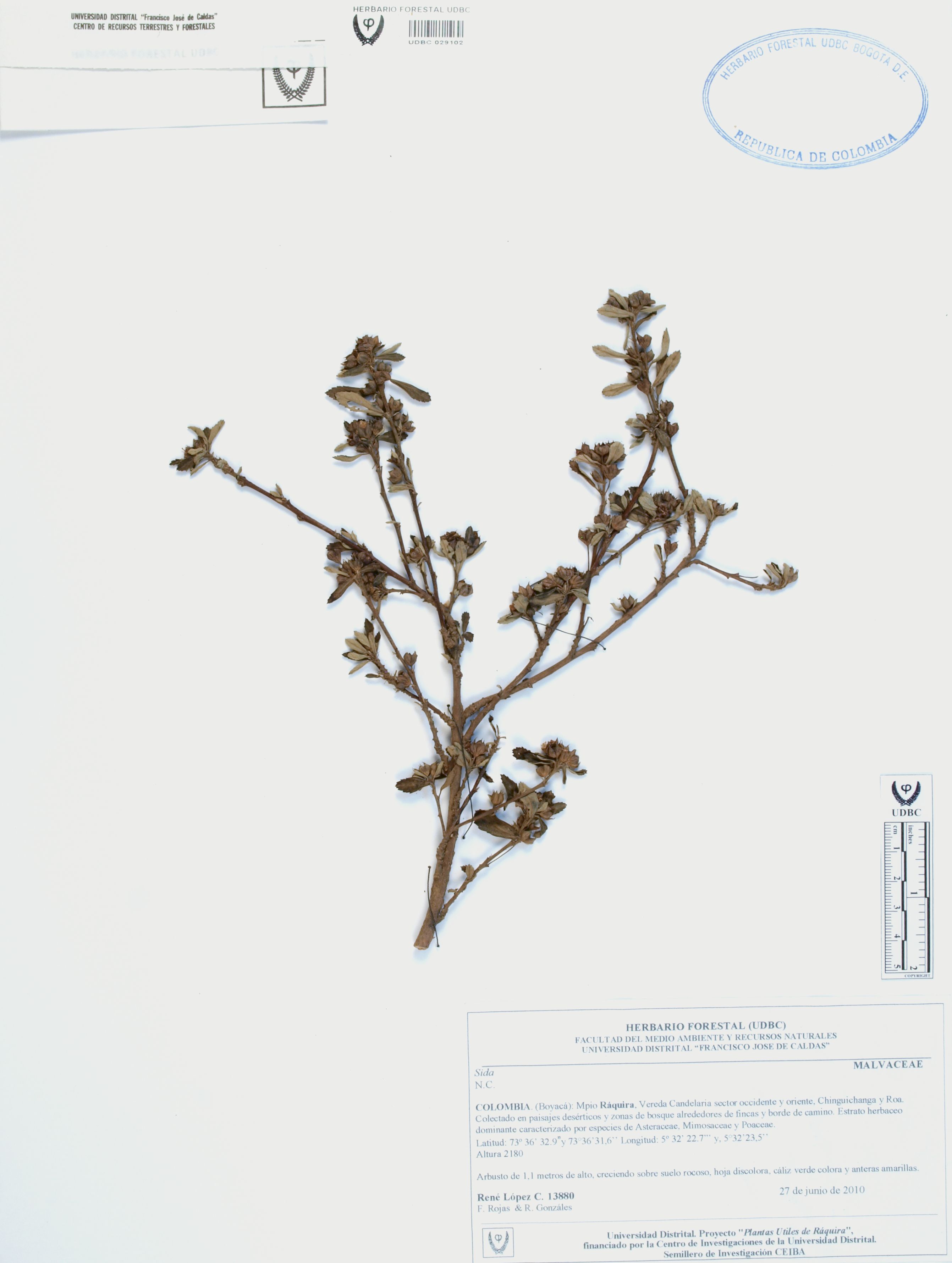 Fotografía del ejemplar López, R. 13880, determinado como Sida sp.