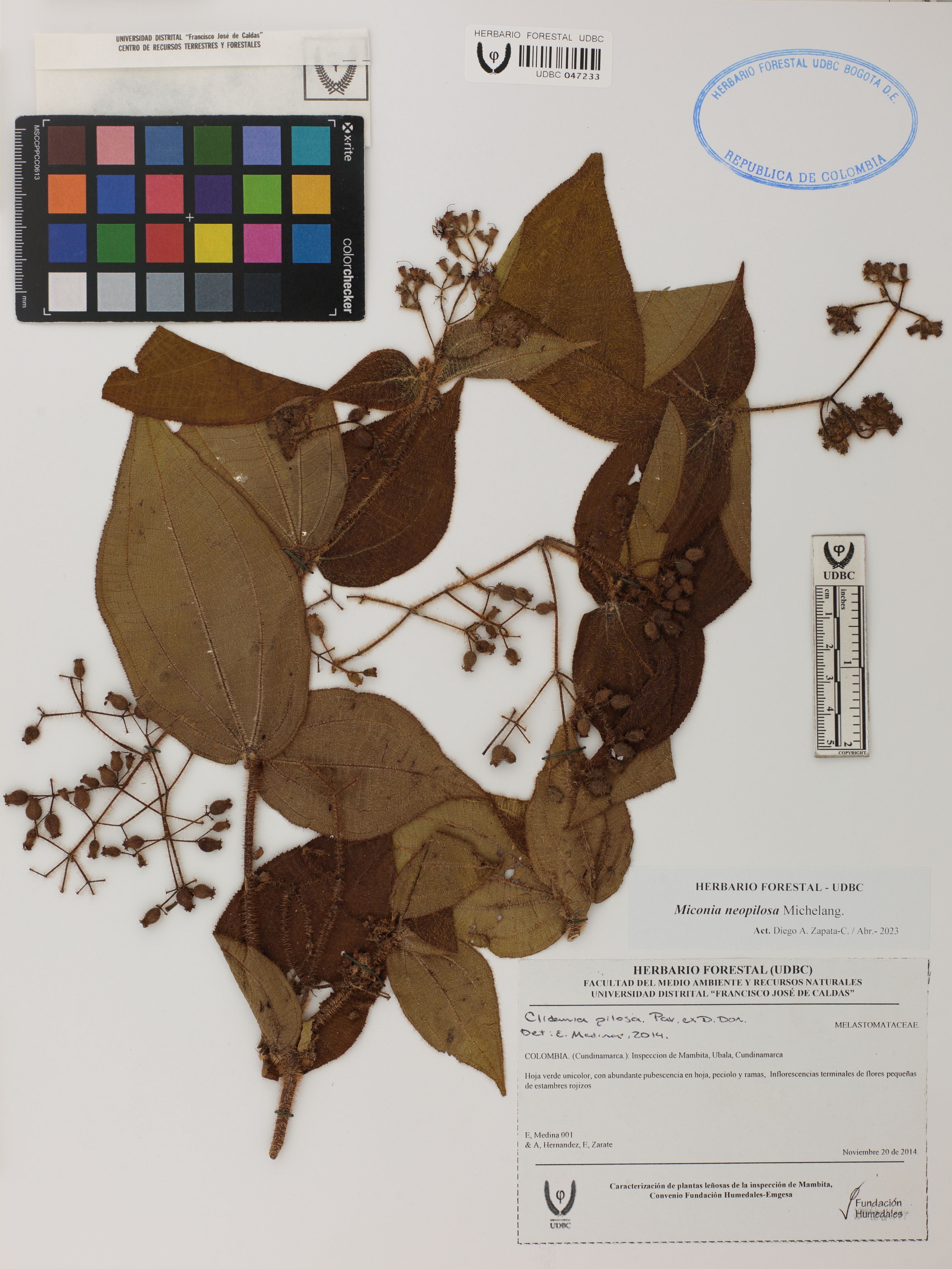 | dc.description | Fotografía del ejemplar Medina, E. 1, determinado como Miconia neopilosa en el año 2023 | |