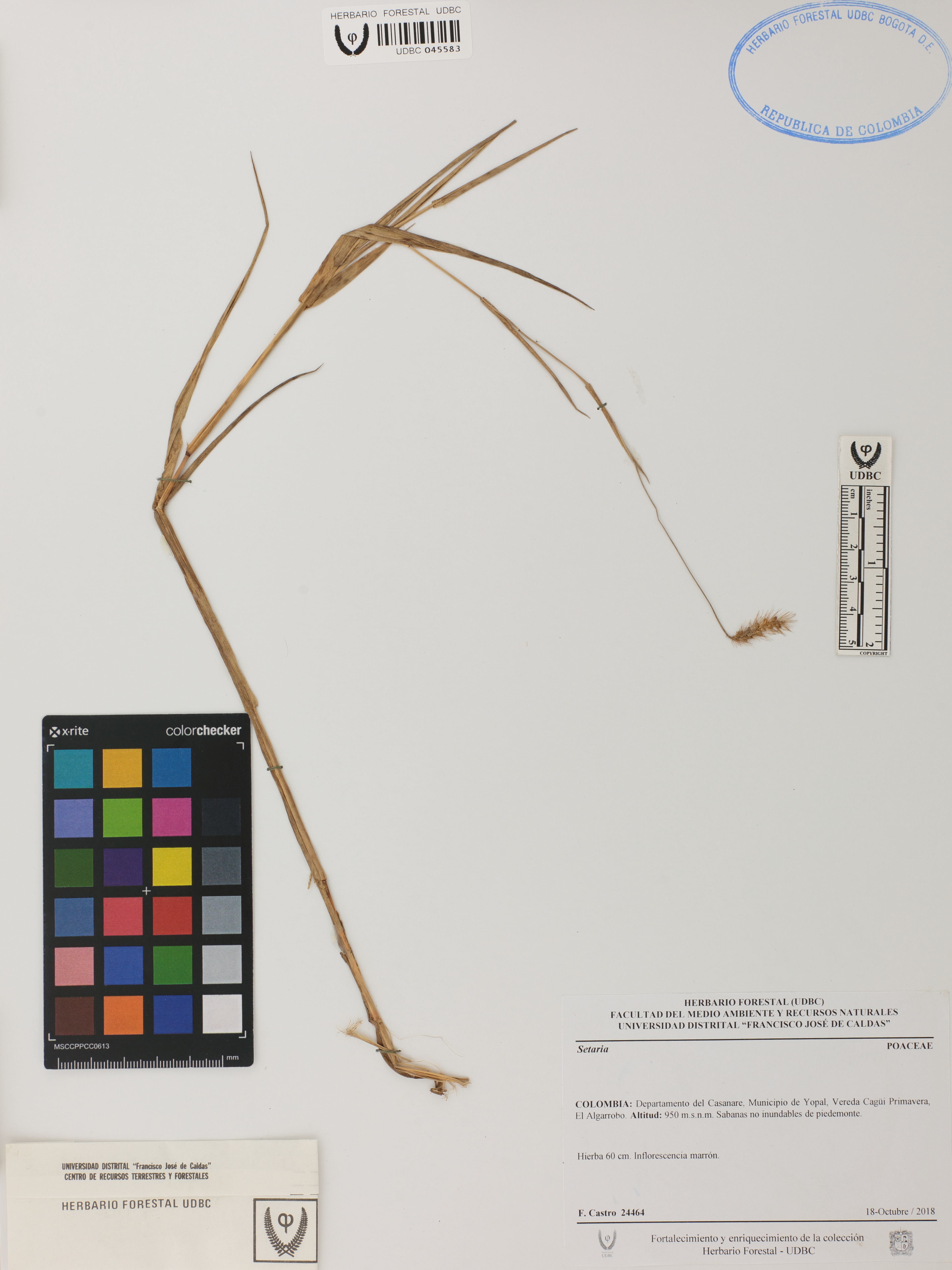 Fotografía del ejemplar Castro, F. 24464, determinado como Setaria sp.