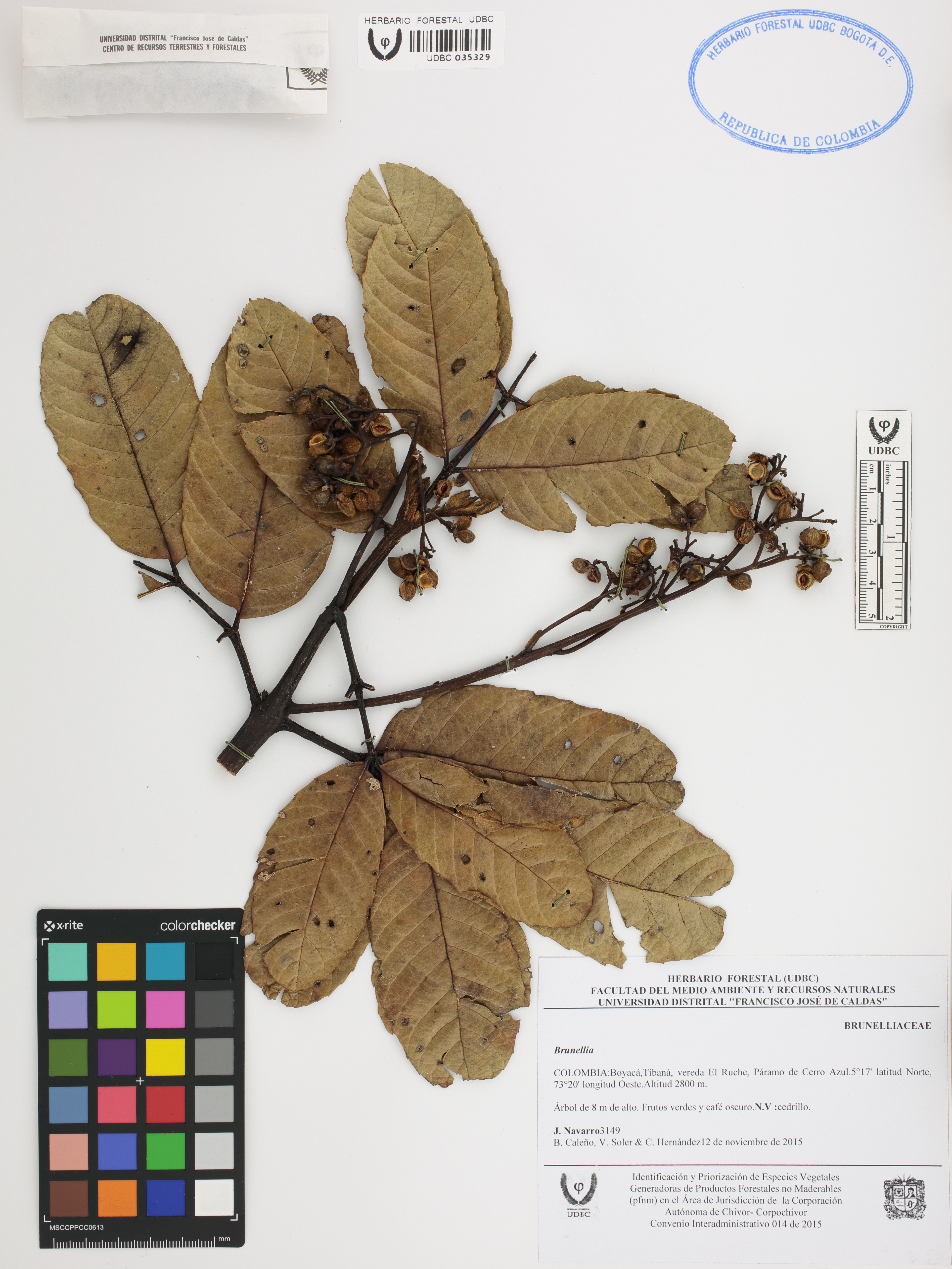 Fotografía del ejemplar Navarro, J. 3149, determinado como Brunellia sp.