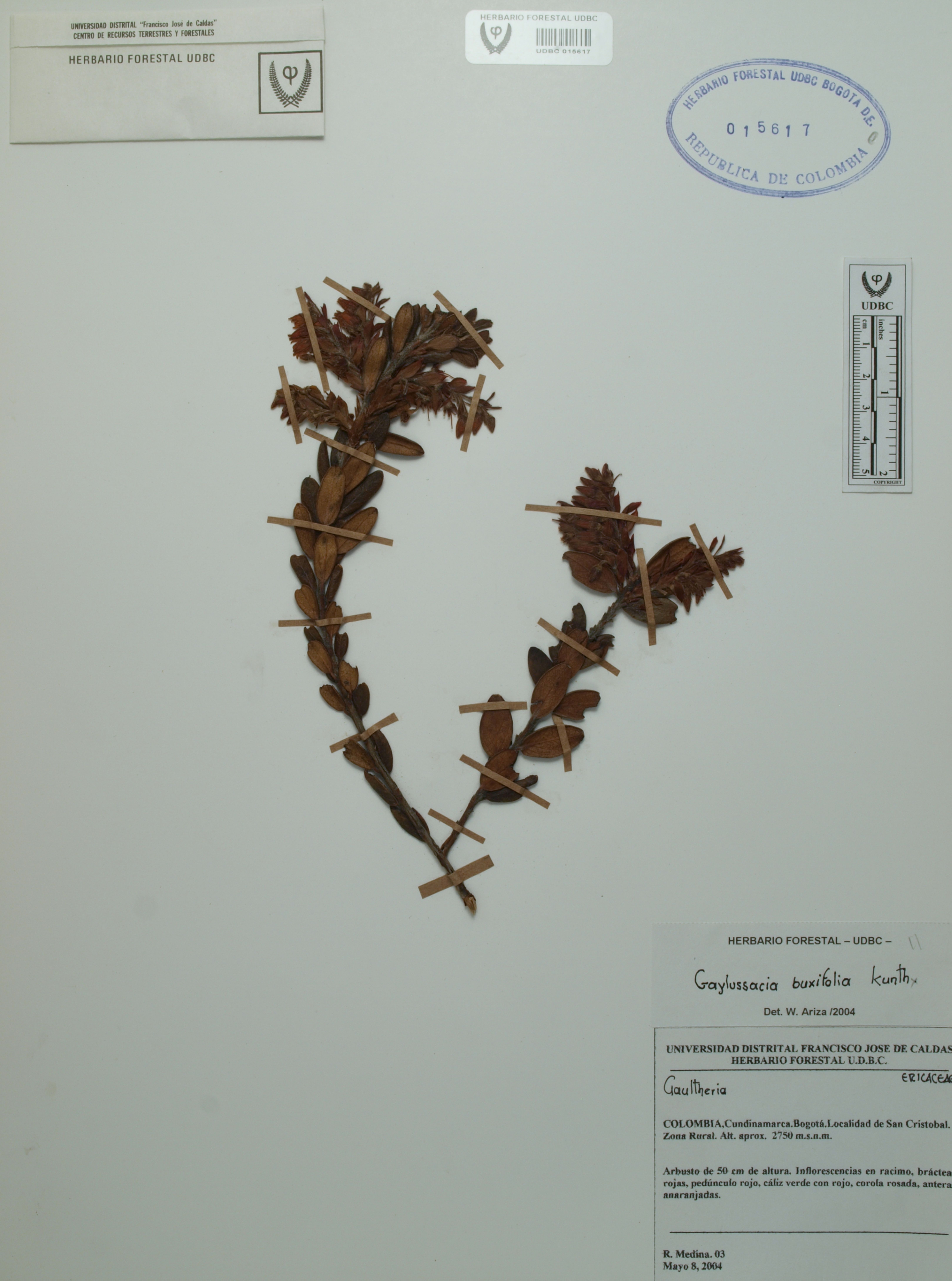 | dc.description | Fotografía del ejemplar Medina, R. 3, determinado como Gaylussacia buxifolia en el año 2004 | |