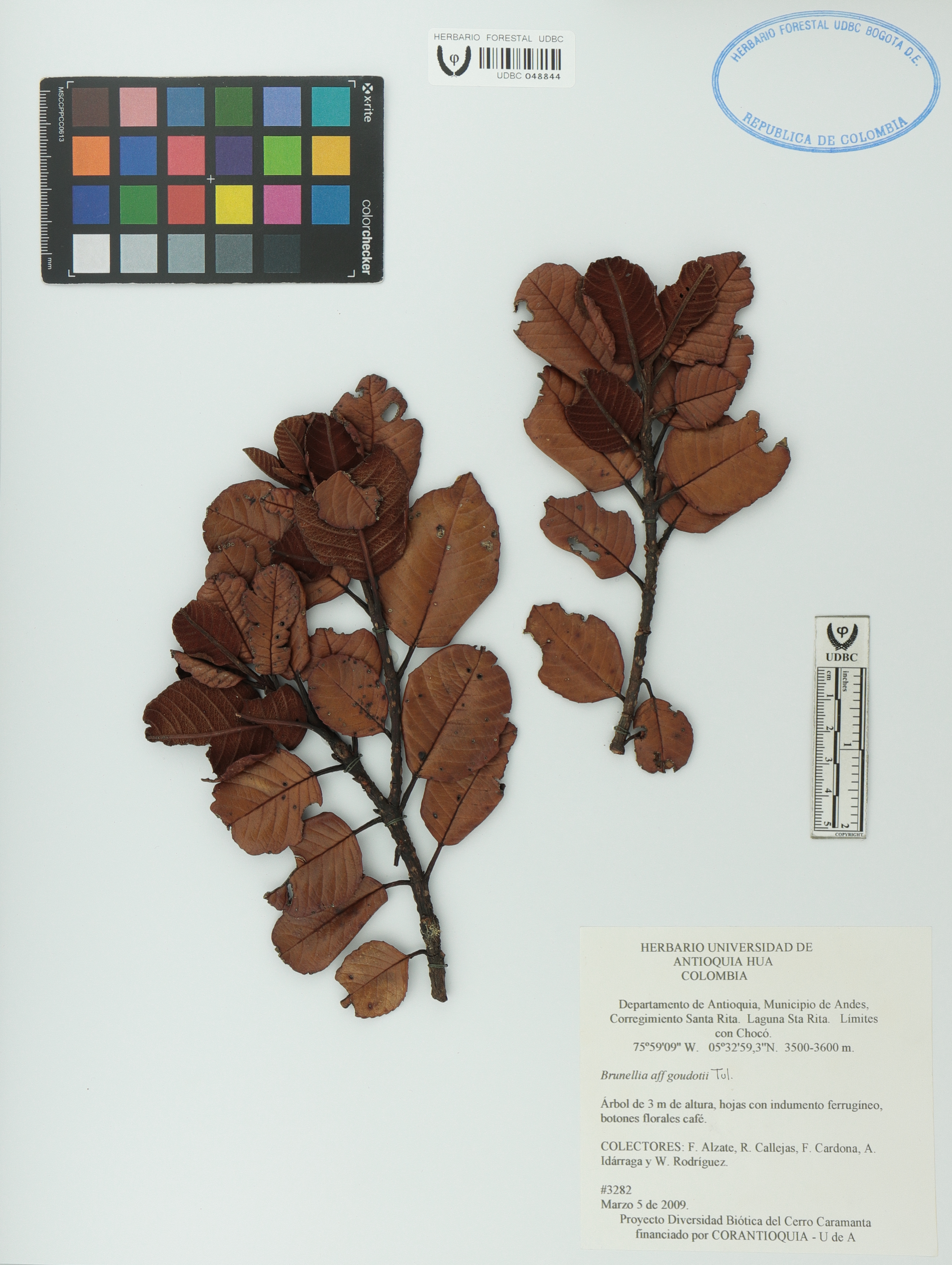 Fotografía del ejemplar Alzate, F. 3282, determinado como Brunellia goudotii