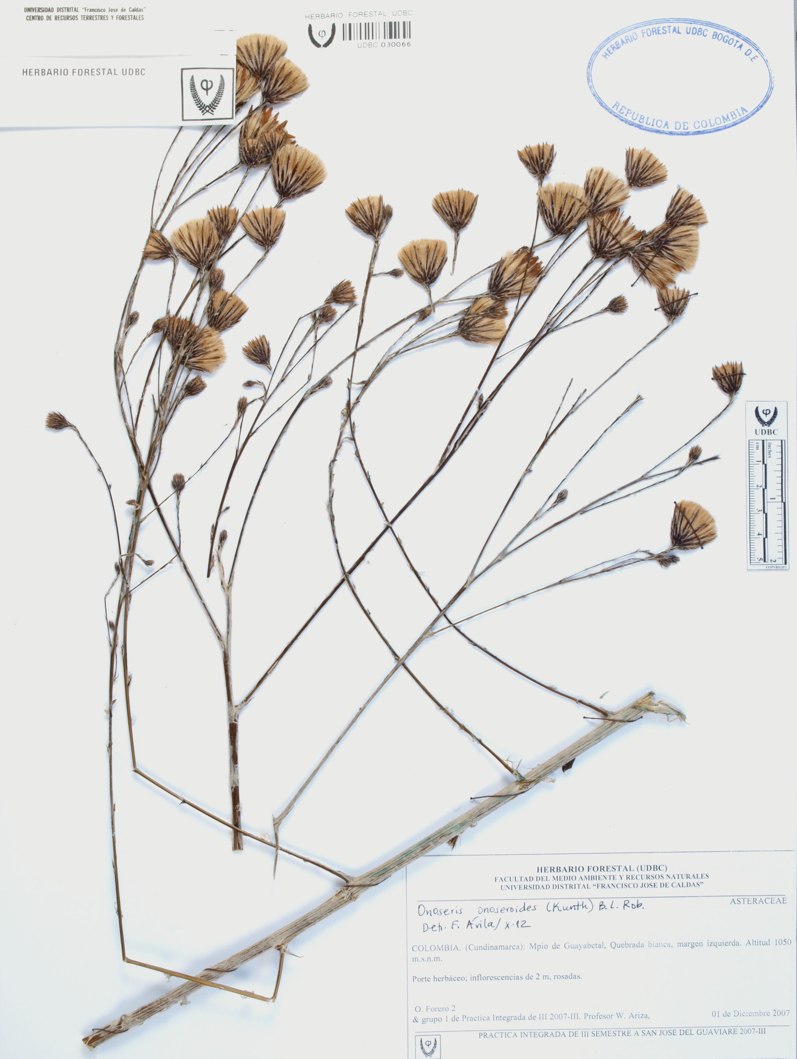 Fotografía del ejemplar Forero, O. 2, determinado como Onoseris onoseroides en el año 2012