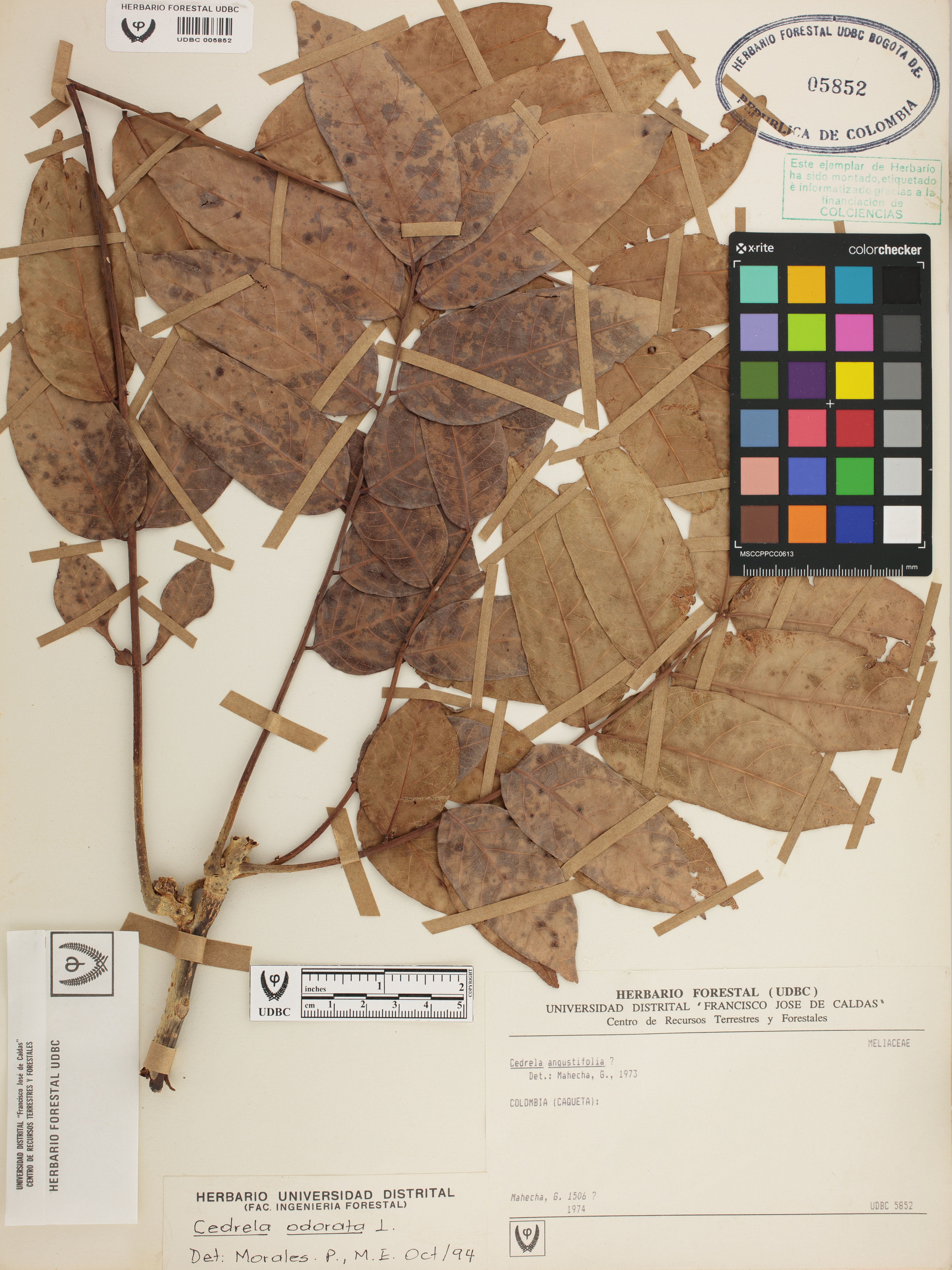 Fotografía del ejemplar Mahecha, G. 1506, determinado como Cedrela odorata en el año 1994