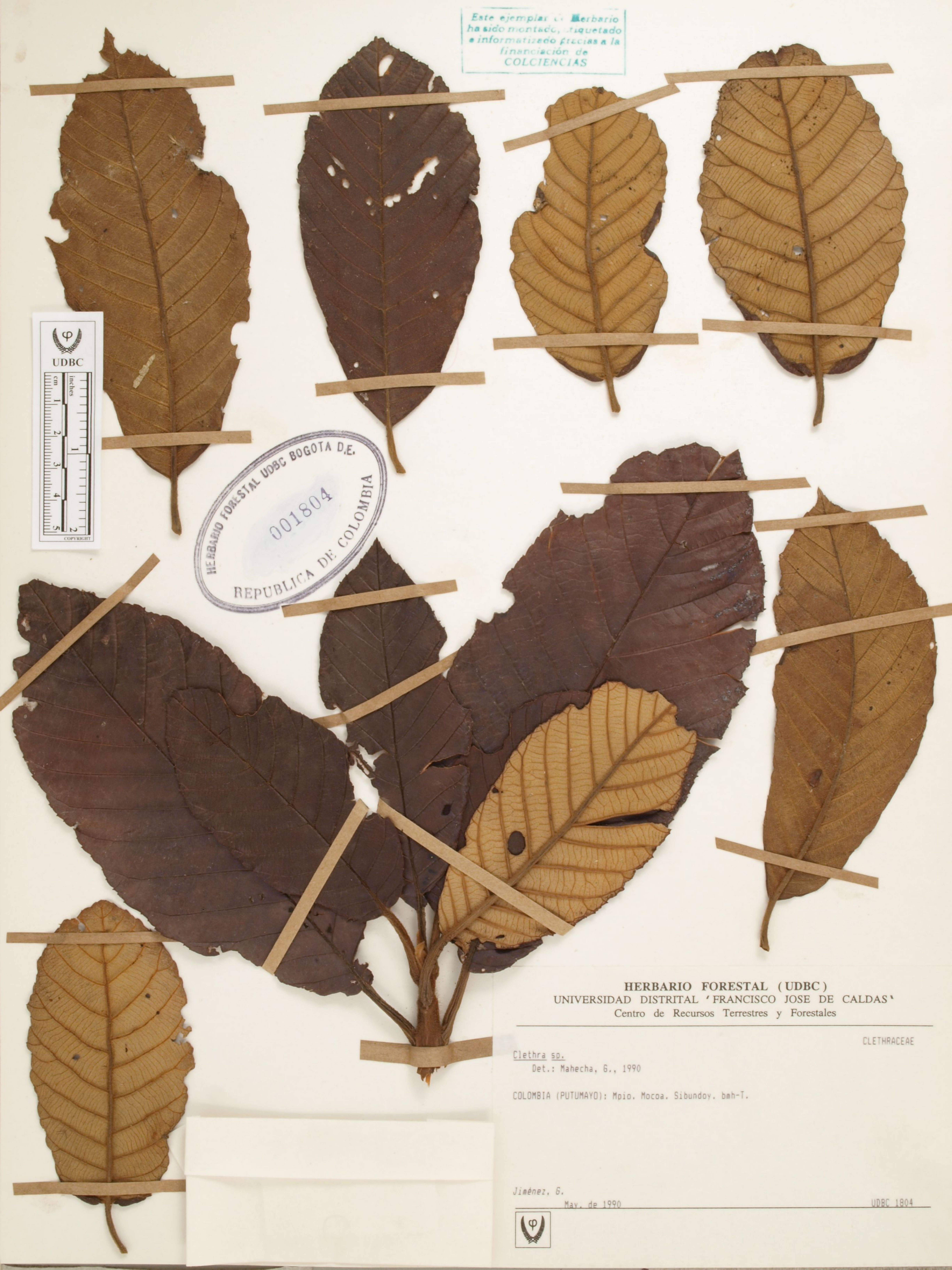Fotografía del ejemplar Jiménez, G., determinado como Clethra sp. en el año 1990