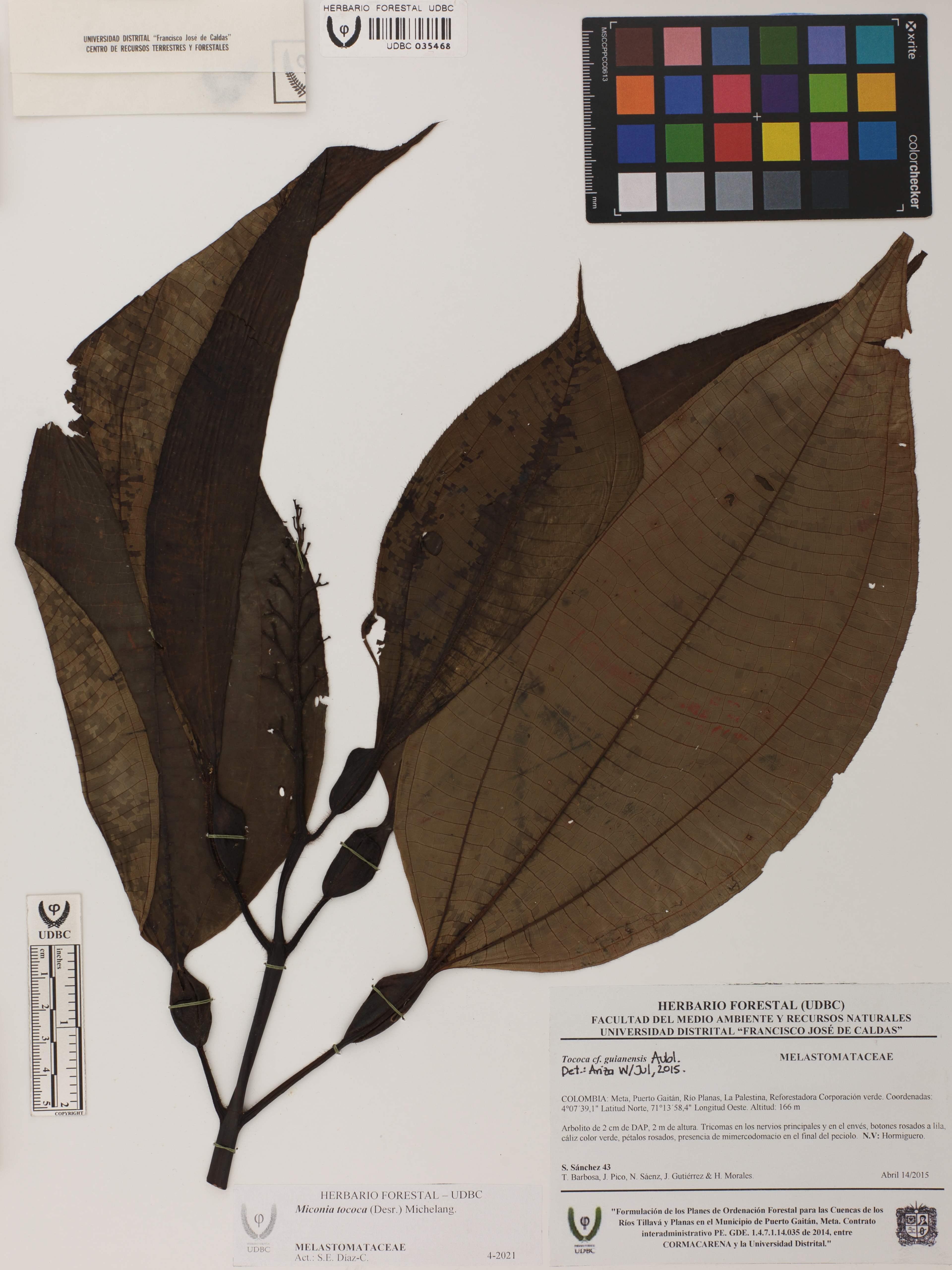 | dc.description | Fotografía del ejemplar Sánchez, S. 43, determinado como Miconia tococa en el año 2015 | |