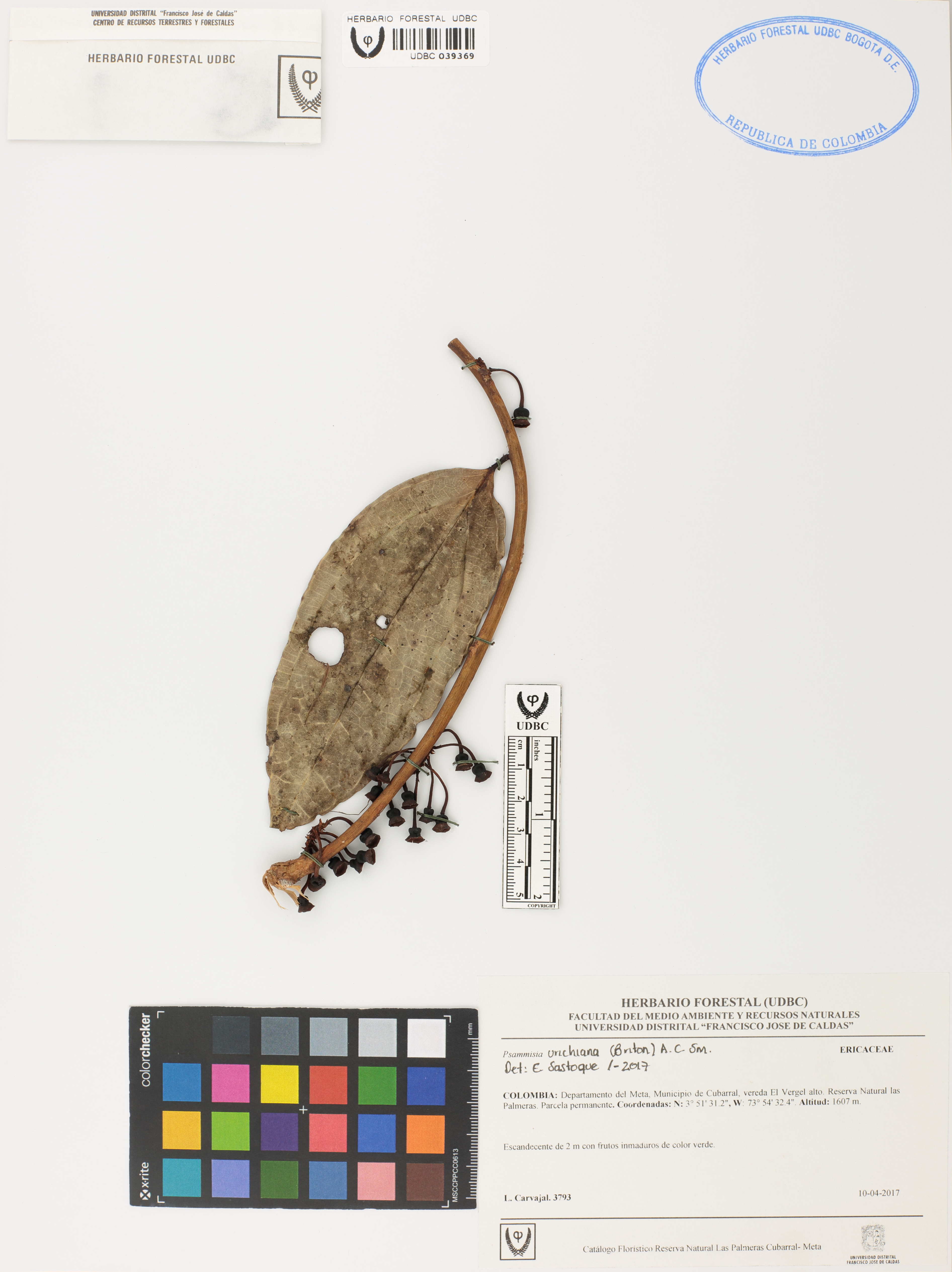 | dc.description | Fotografía del ejemplar Carvajal, L. 3793, determinado como Psammisia urichiana en el año 2017 | |