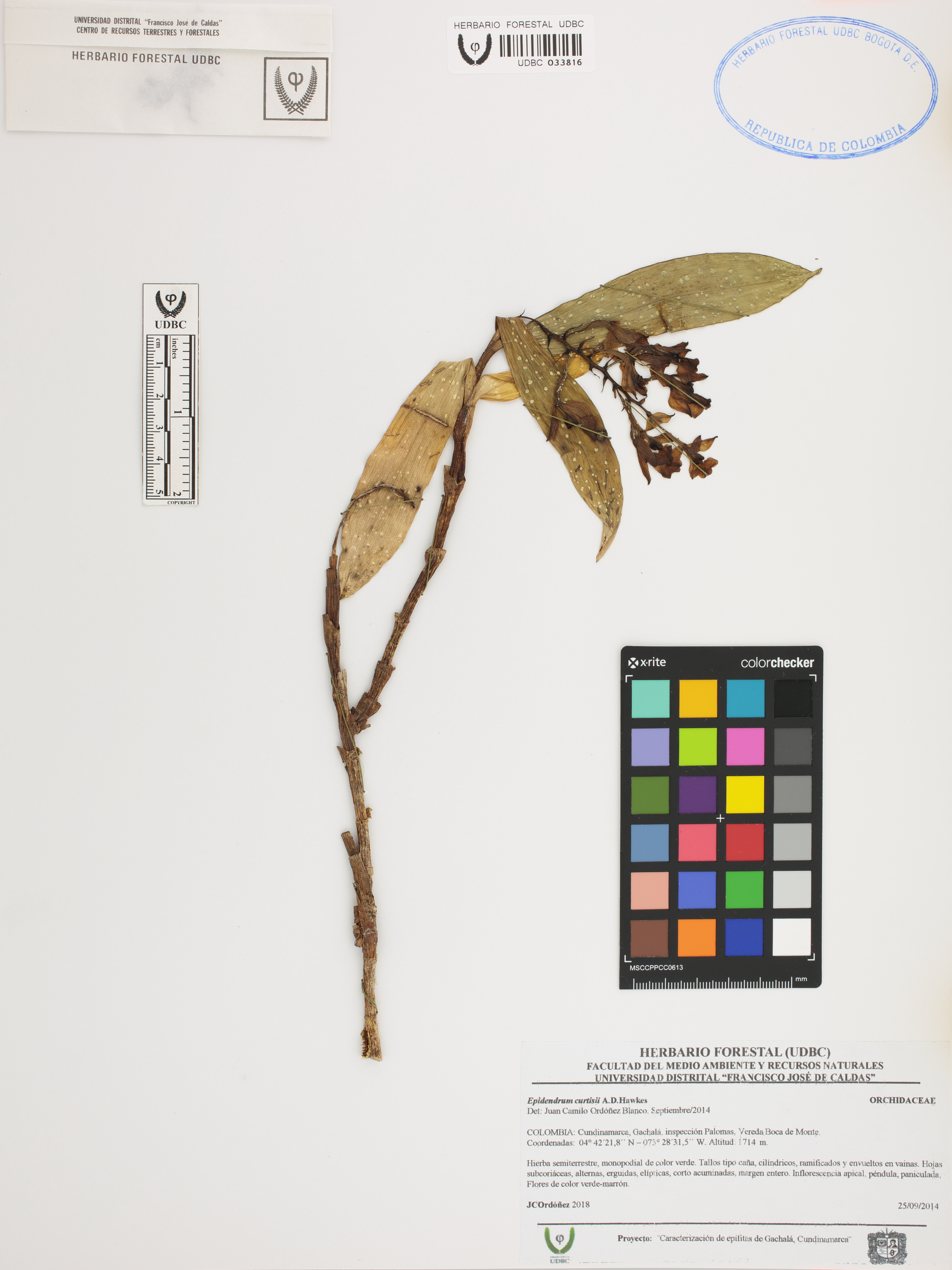 Fotografía del ejemplar Ordóñez, J. 2018, determinado como Epidendrum curtisii en el año 2014