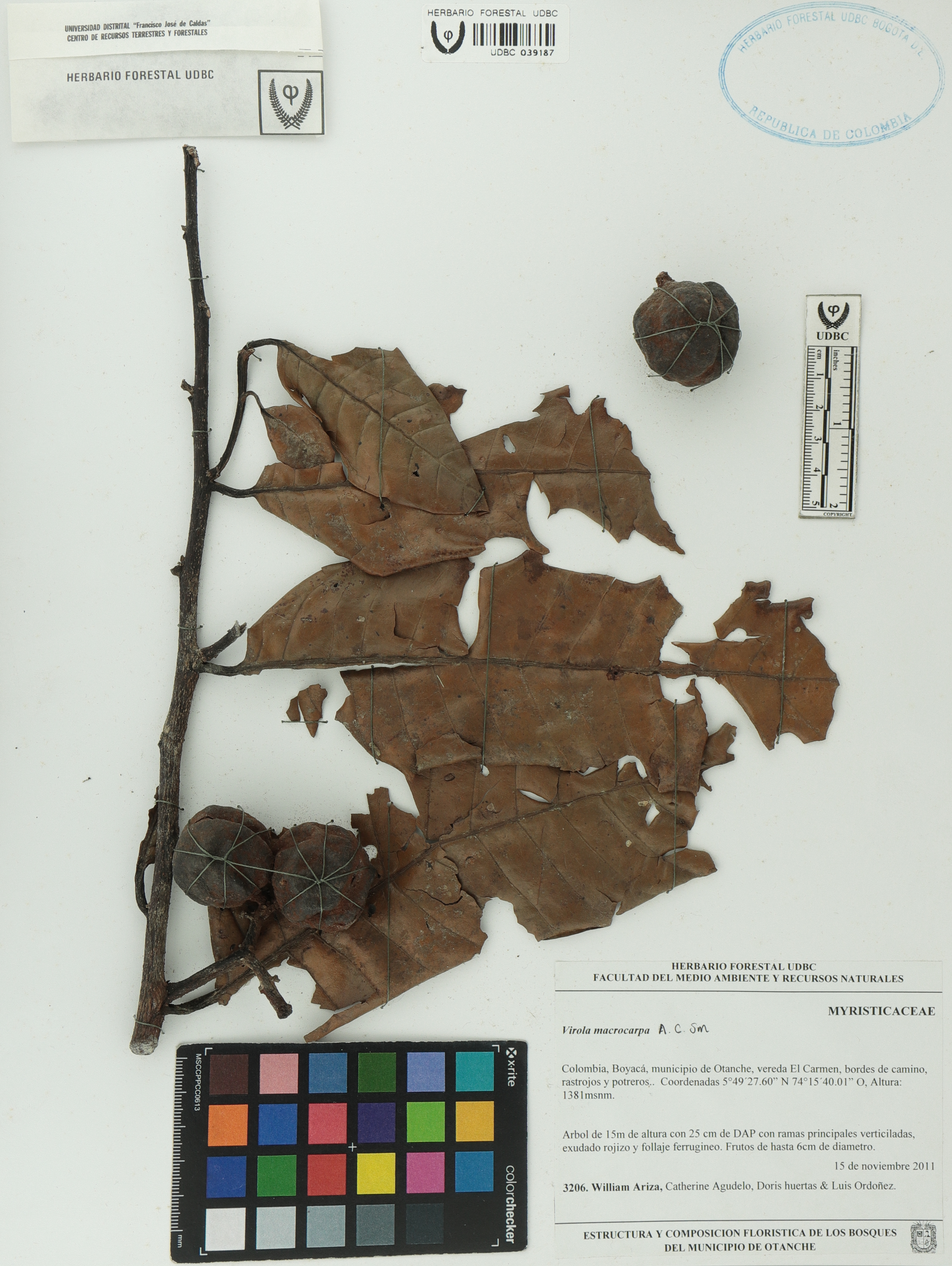 | dc.description | Fotografía del ejemplar Ariza, W. 3206, determinado como Virola macrocarpa | |