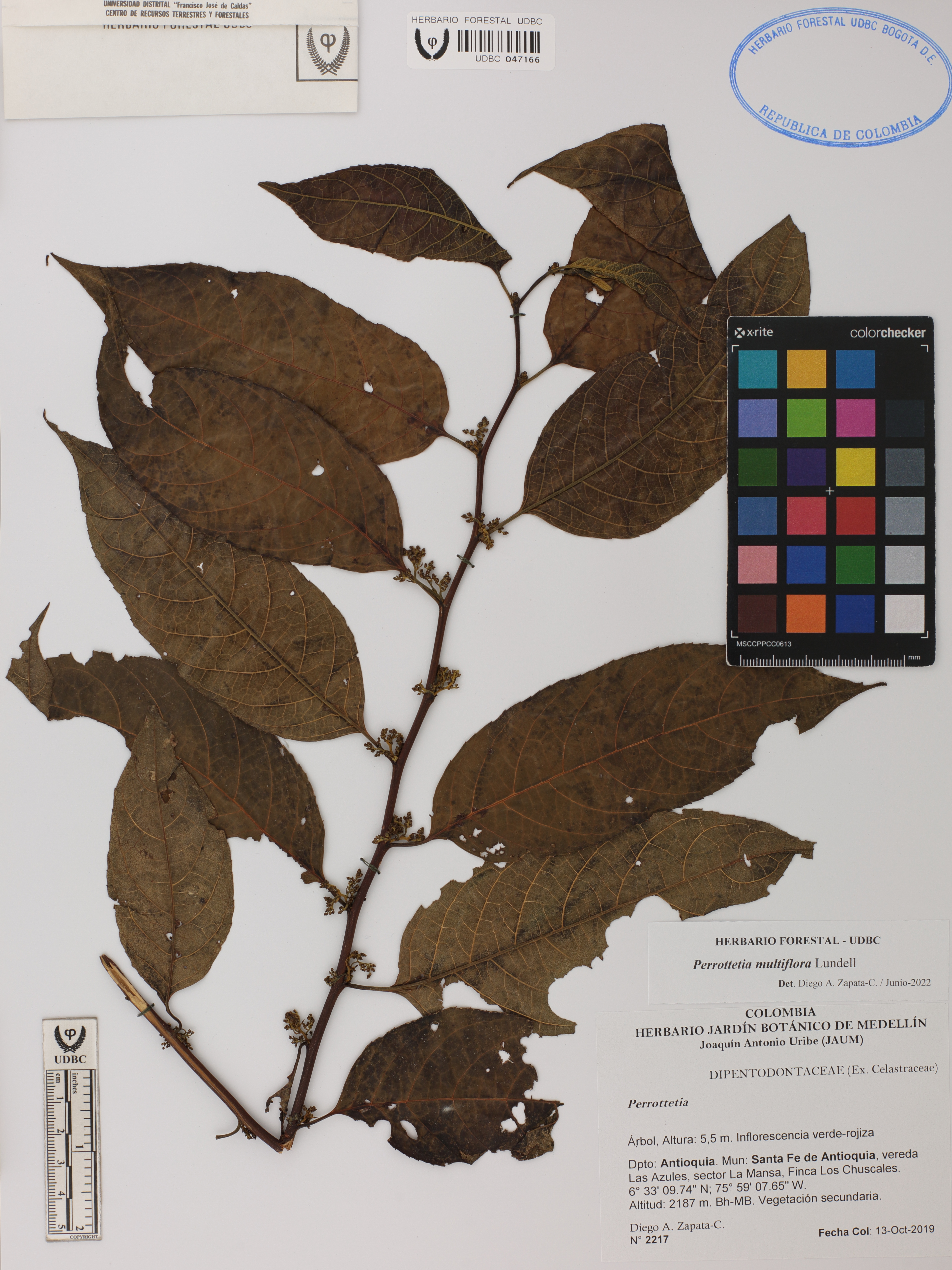 Fotografía del ejemplar Zapata-C., D. 2217, determinado como Perrottetia multiflora en el año 2022