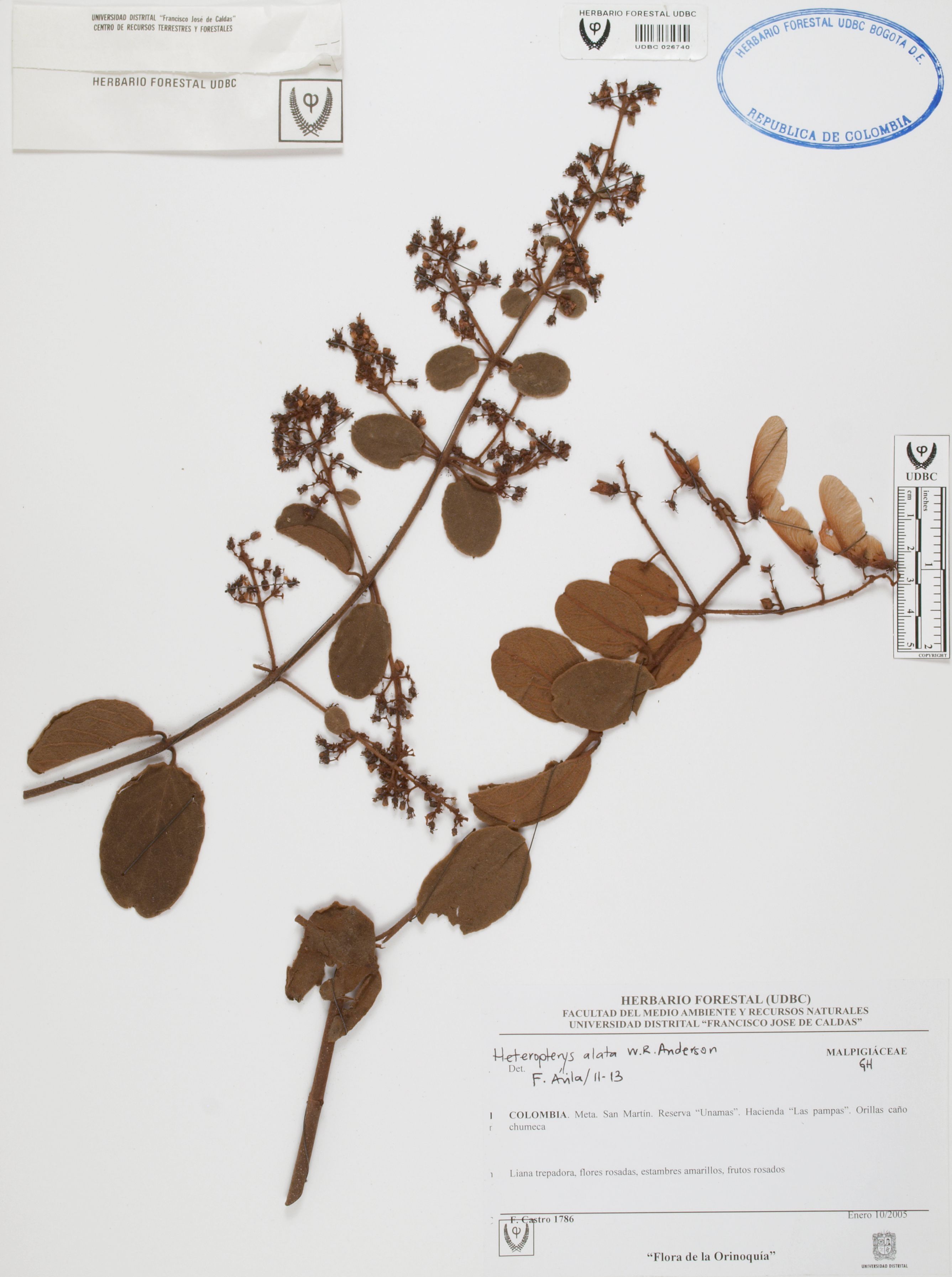 Fotografía del ejemplar Castro, F. 1786, determinado como Heteropterys alata en el año 2013
