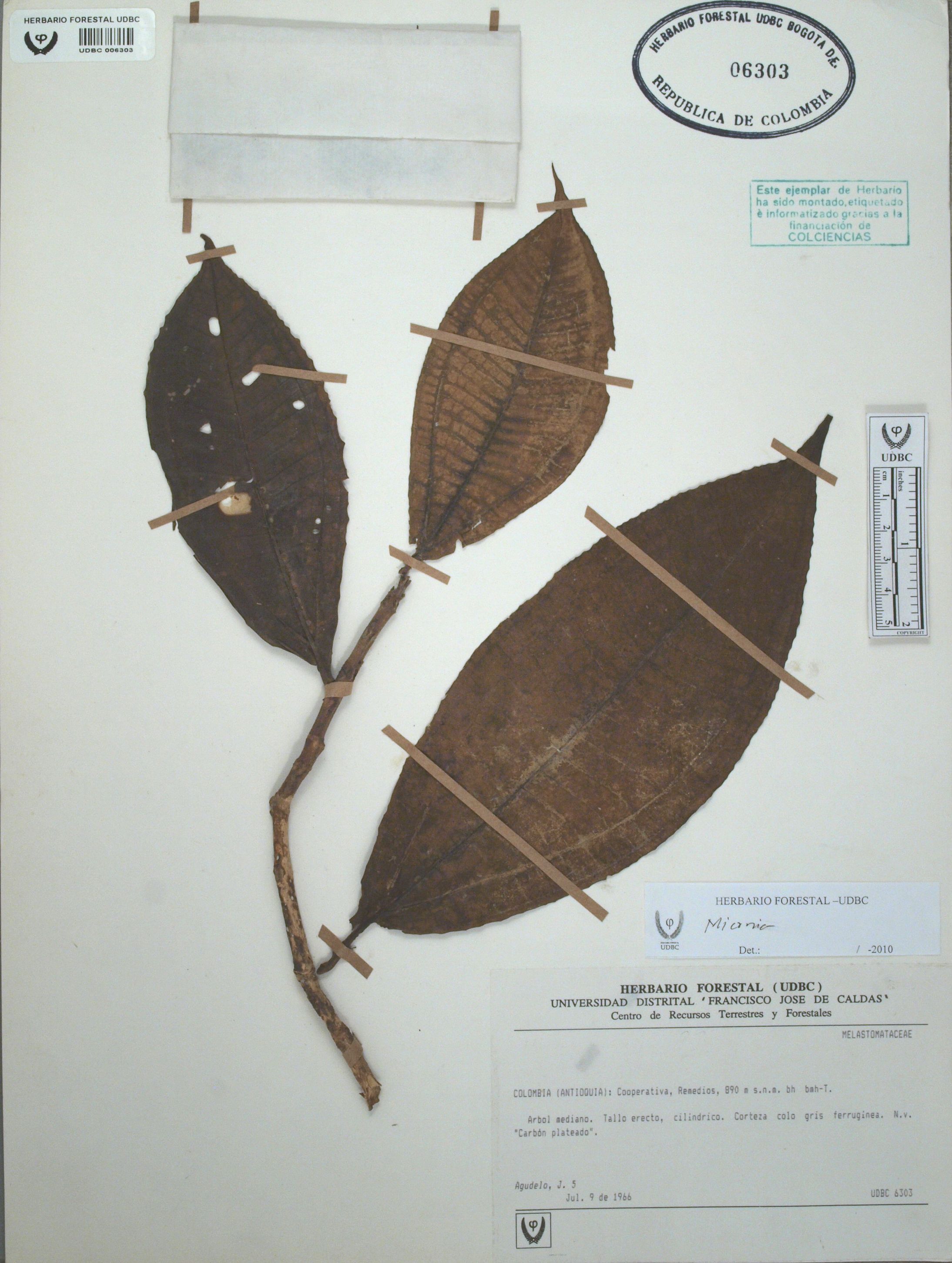 Fotografía del ejemplar Agudelo, J. 5, determinado como Miconia sp. en el año 2010