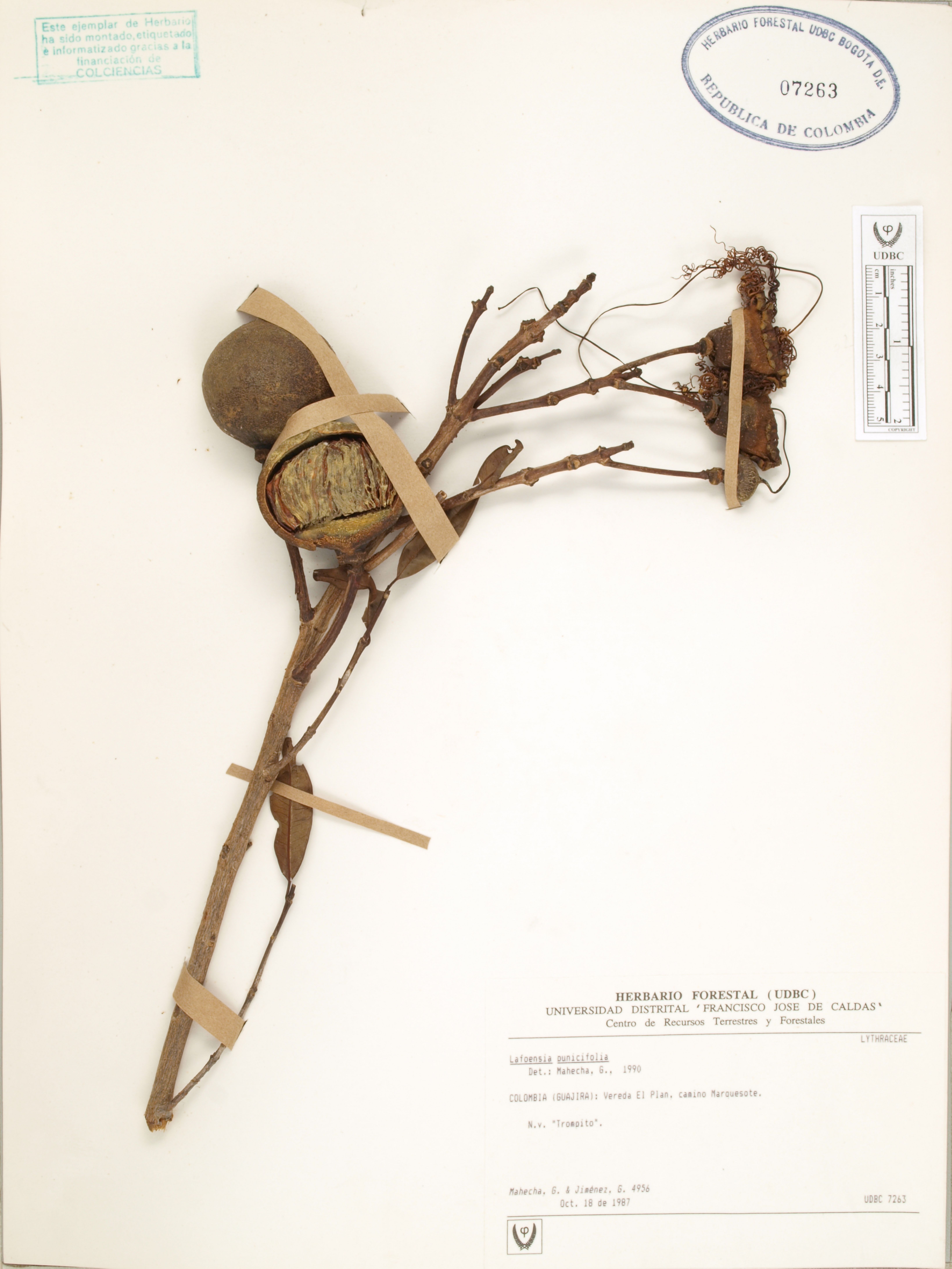 Fotografía del ejemplar Mahecha, G. 4956, determinado como Lafoensia punicifolia