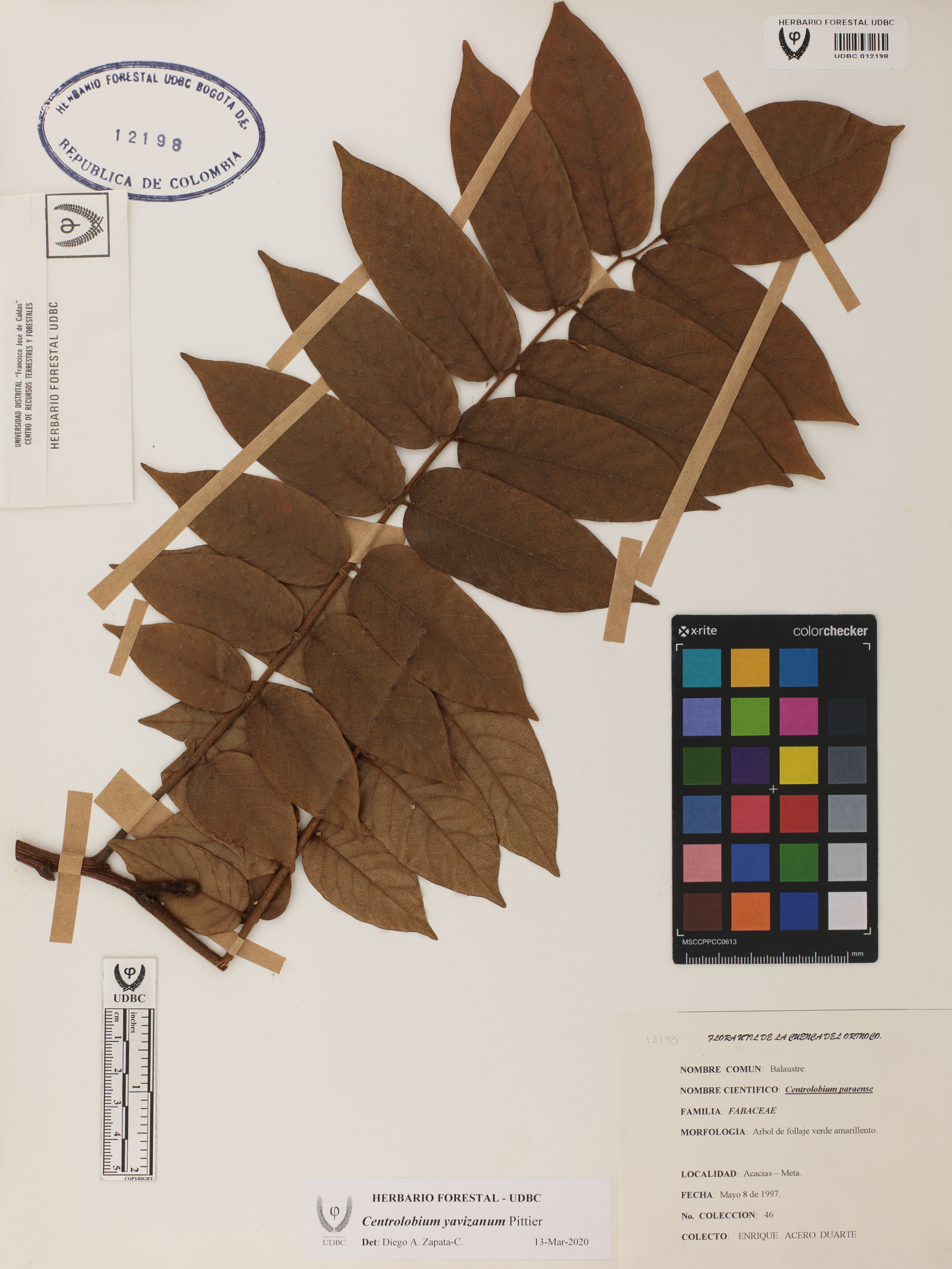 | dc.description | Fotografía del ejemplar Acero, E. 46, determinado como Centrolobium yavizanum en el año 2020 | |