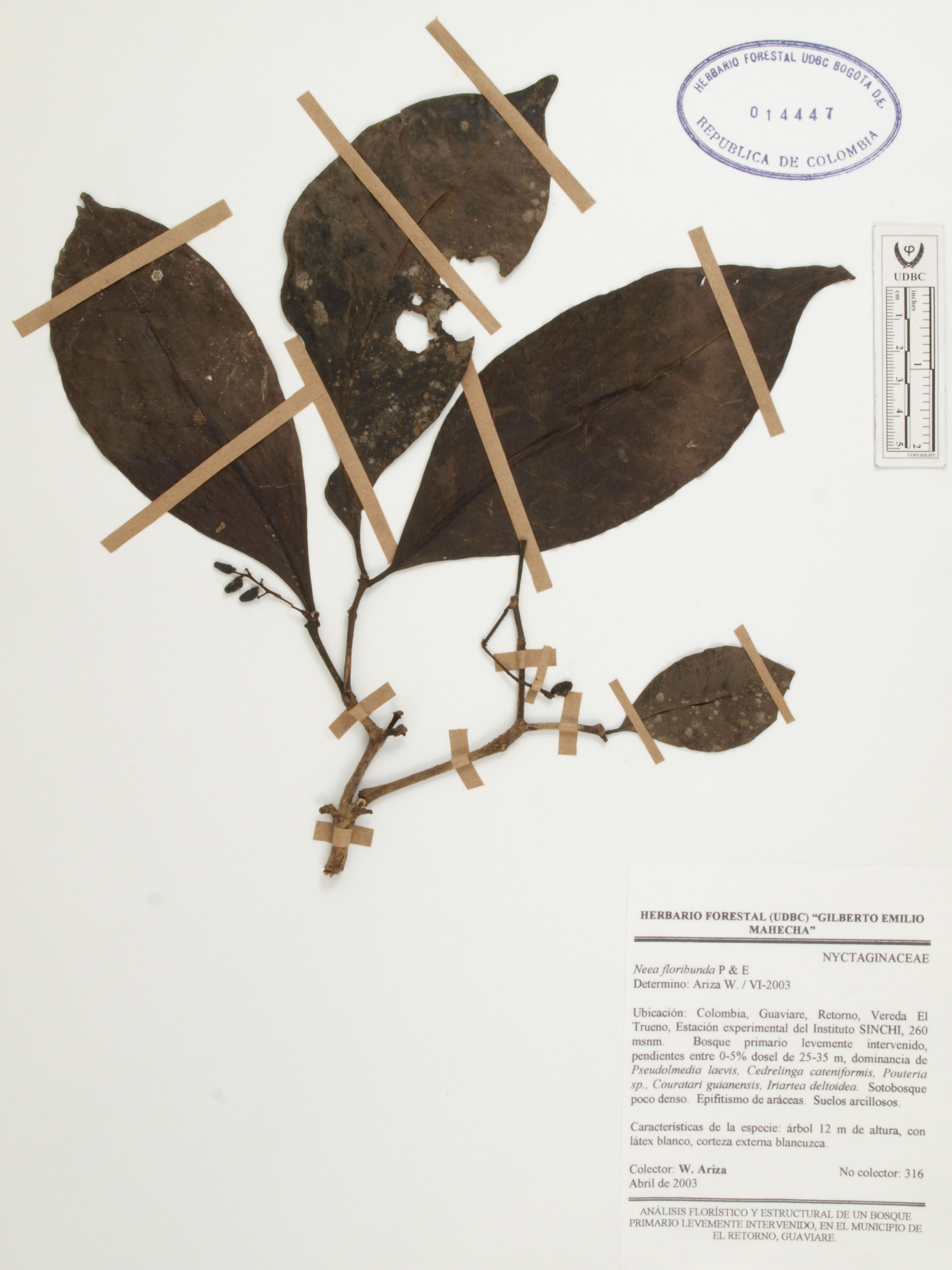 | dc.description | Fotografía del ejemplar Ariza, W. 316, determinado como Neea floribunda en el año 2003 | |