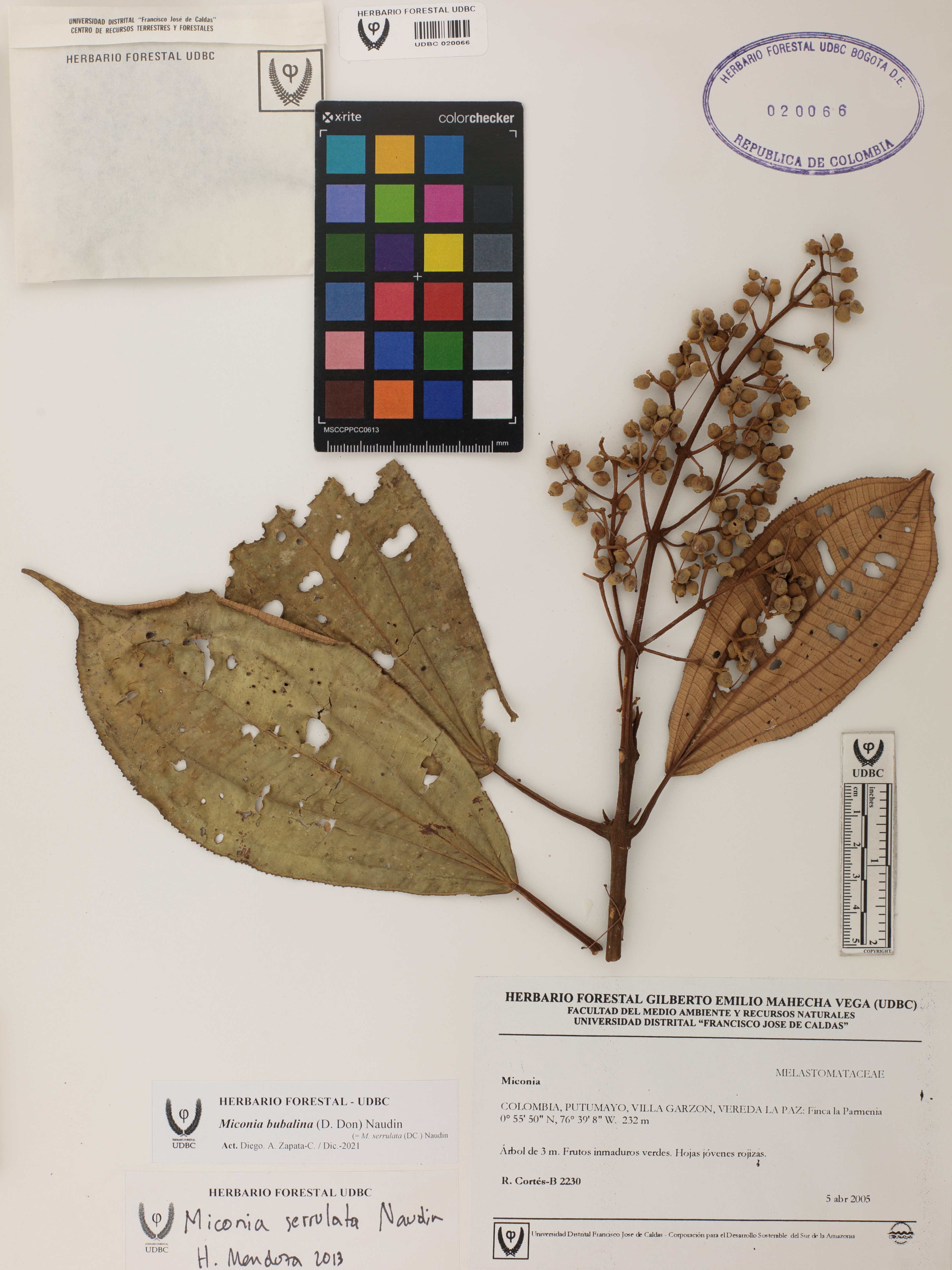 Fotografía del ejemplar Cortés-B., R. 2230, determinado como Miconia bubalina en el año 2013