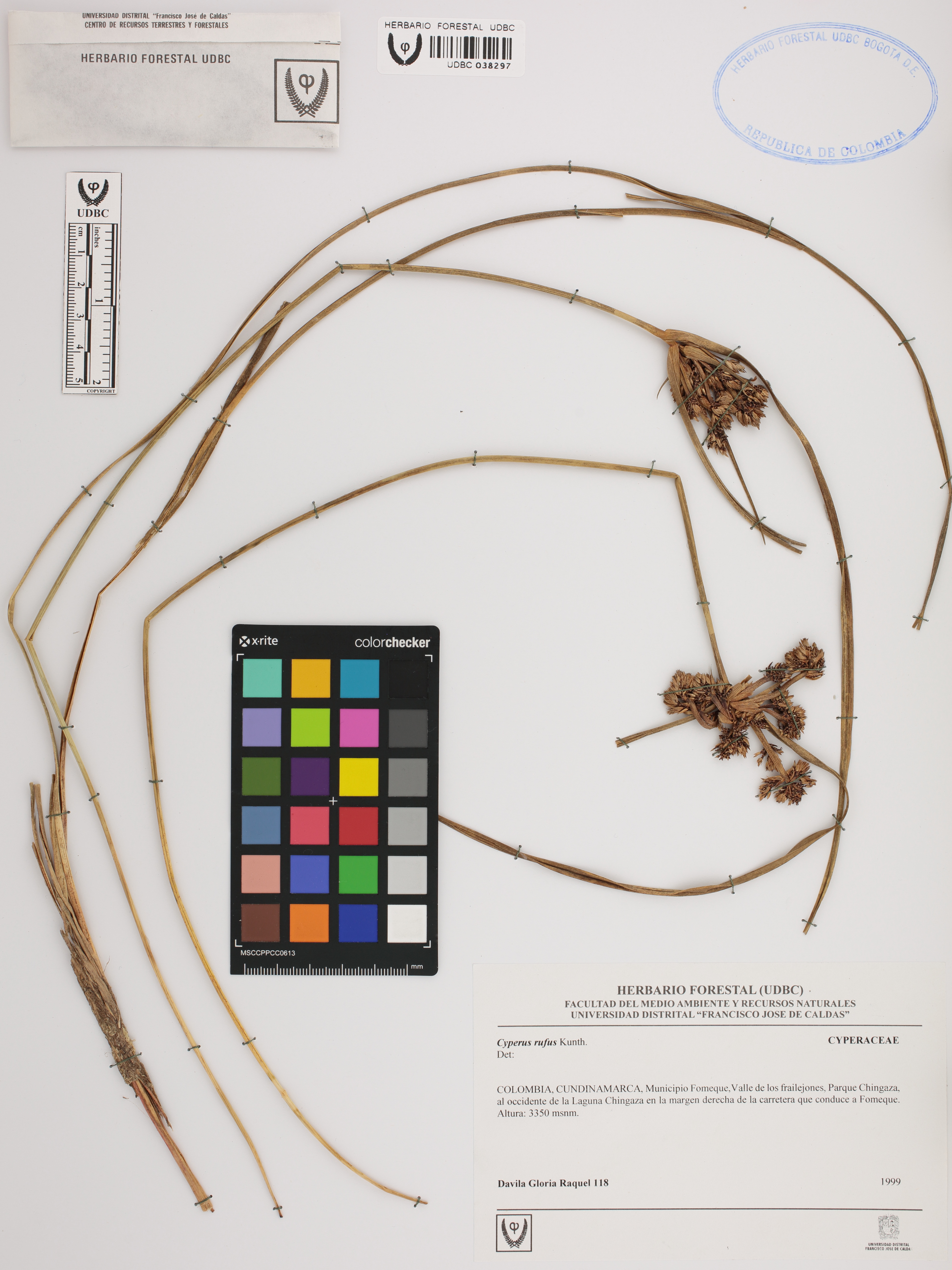 Fotografía del ejemplar Dávila, G. 118, determinado como Cyperus xanthostachyus