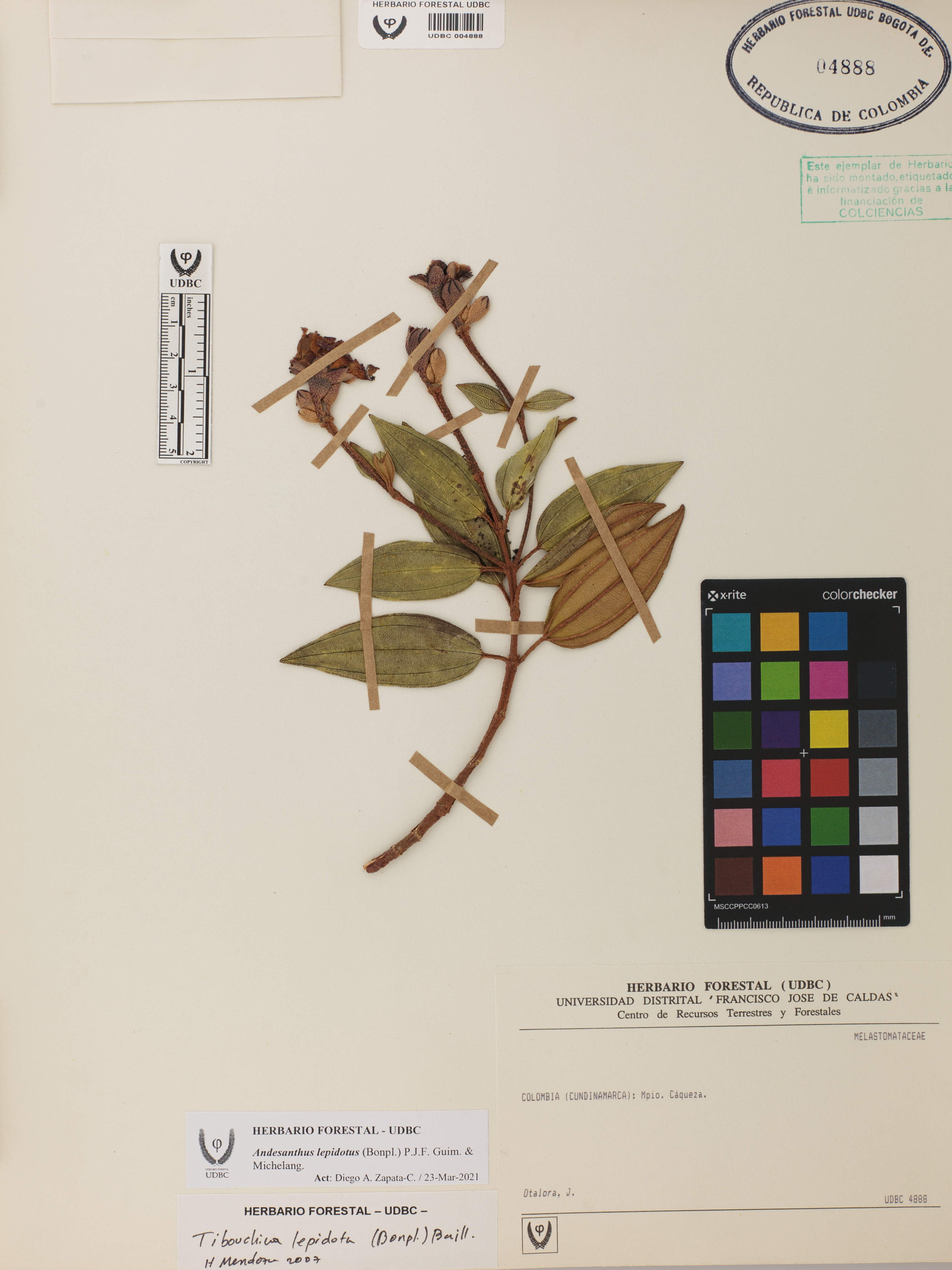 Fotografía del ejemplar Otálora, J. 9, determinado como Andesanthus lepidotus en el año 2007
